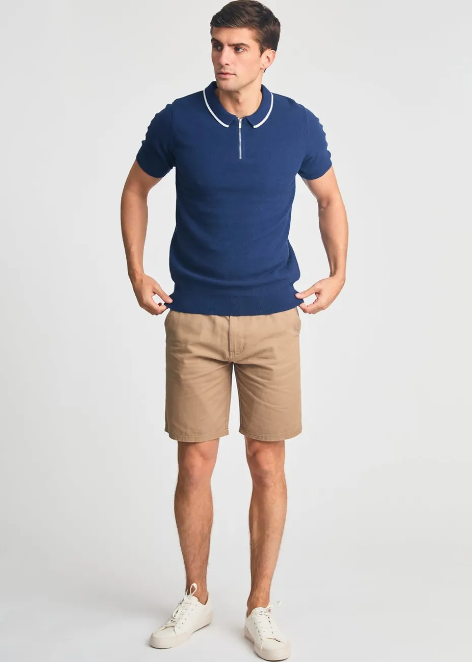 Kensington Eastside Dark Blue Cotton Short Sleeve Zip Neck Polo Shirt