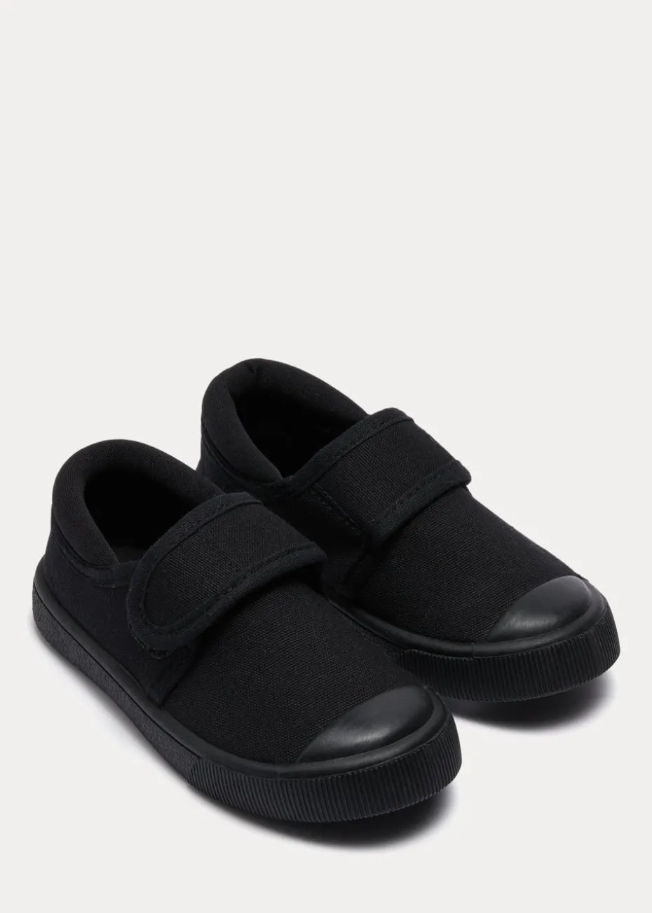 Perfect for PE or everyday wear, these kids black plimsolls have a velcro strap fastening for easy on-off.