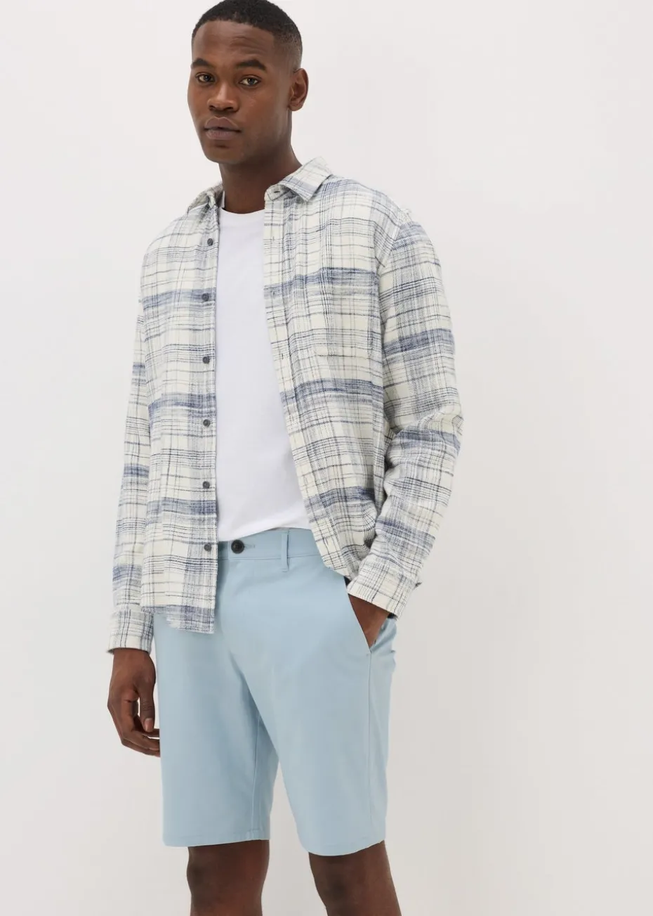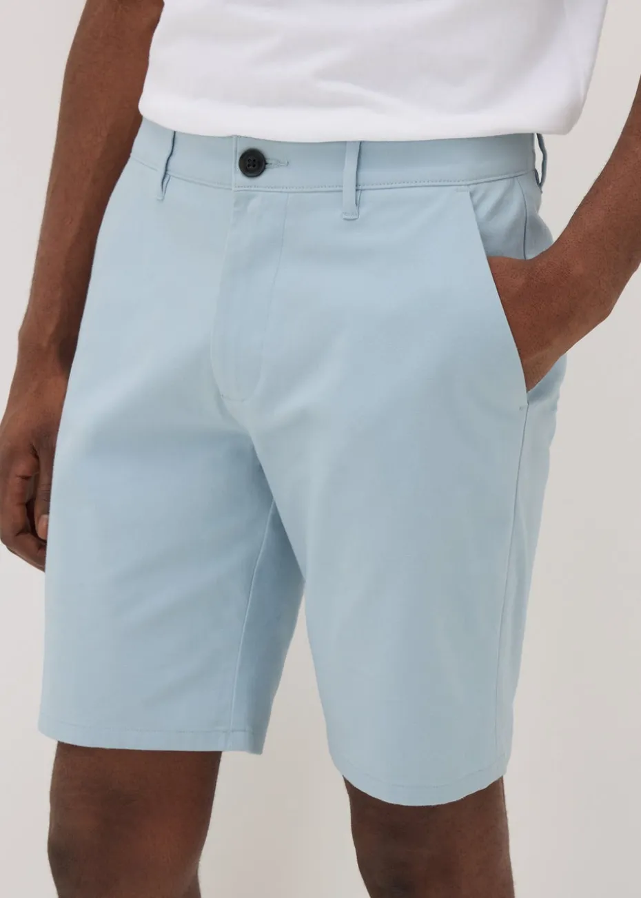 These light blue straight chino shorts are a stylish and comfortable addition to your summer wardrobe. Cut from cotton with a touch of elastane for a hint of stretch, they feature classic chino details like belt loops, a zip fly, and back welt pockets. The straight leg offers a relaxed fit that’s perfect for warm-weather days. Pair these shorts with a crisp white shirt and loafers for a smart casual look.
