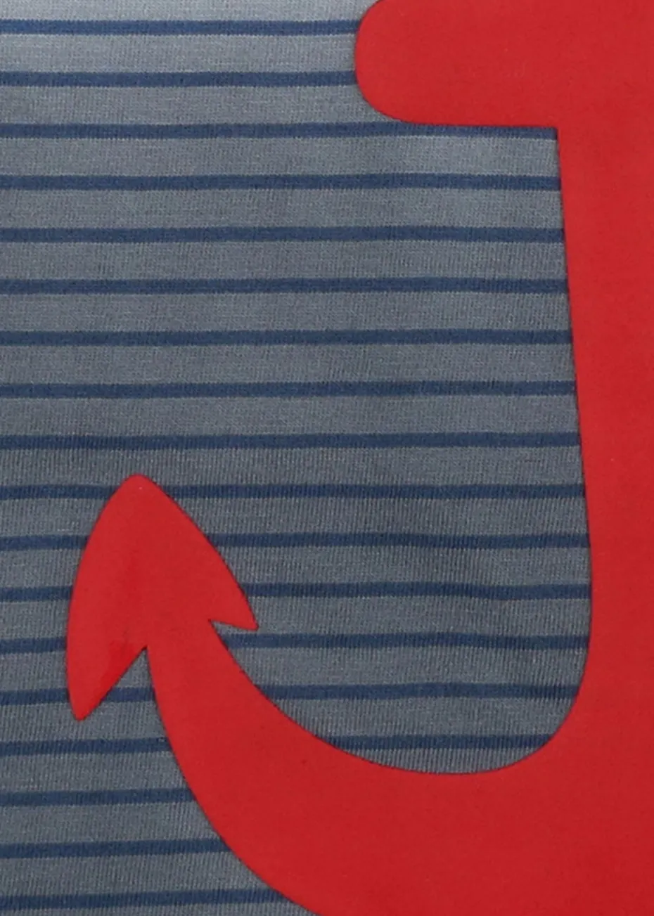 Thistop features our anchor motif and navy stripes with dip dye across the bottom.
