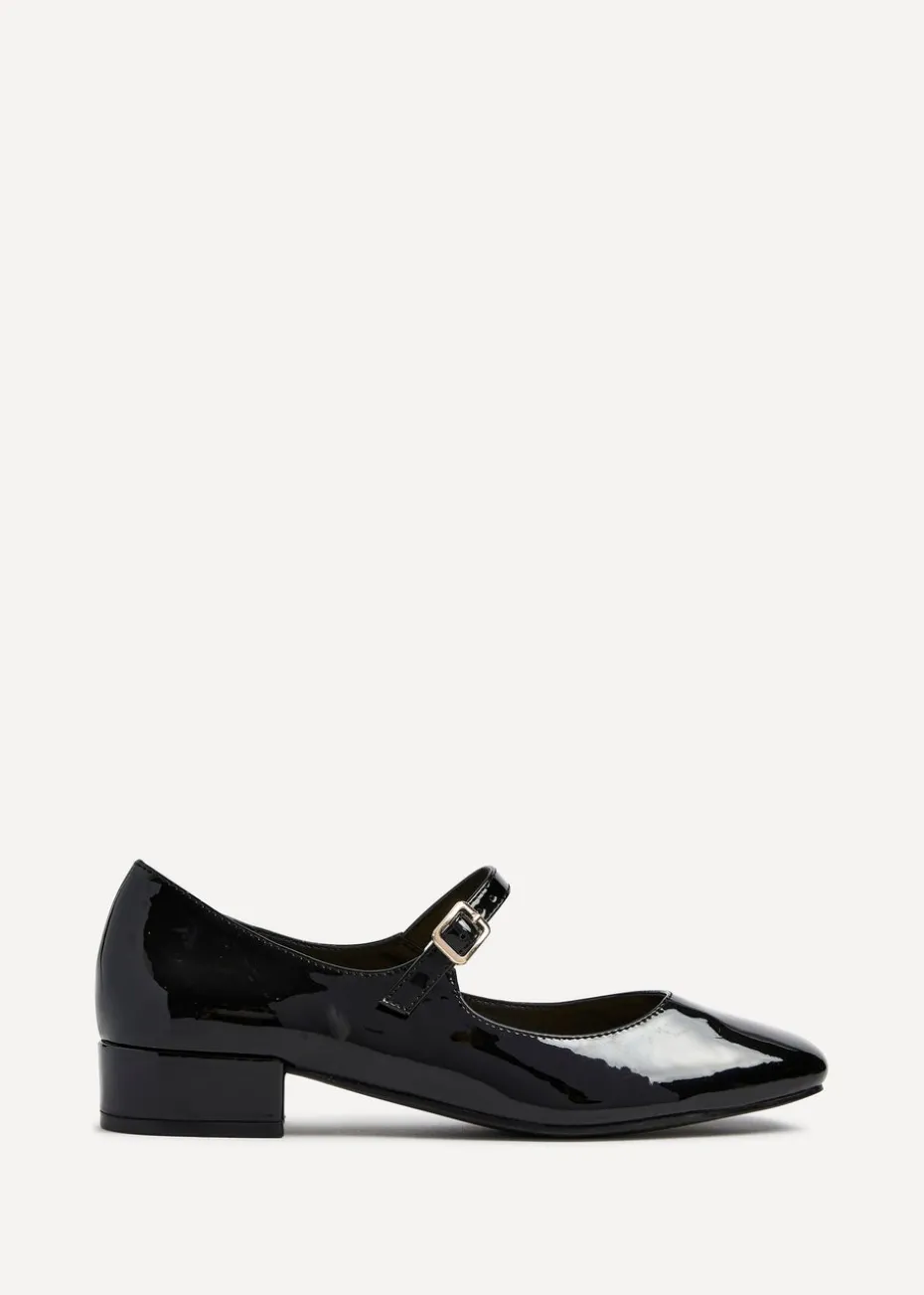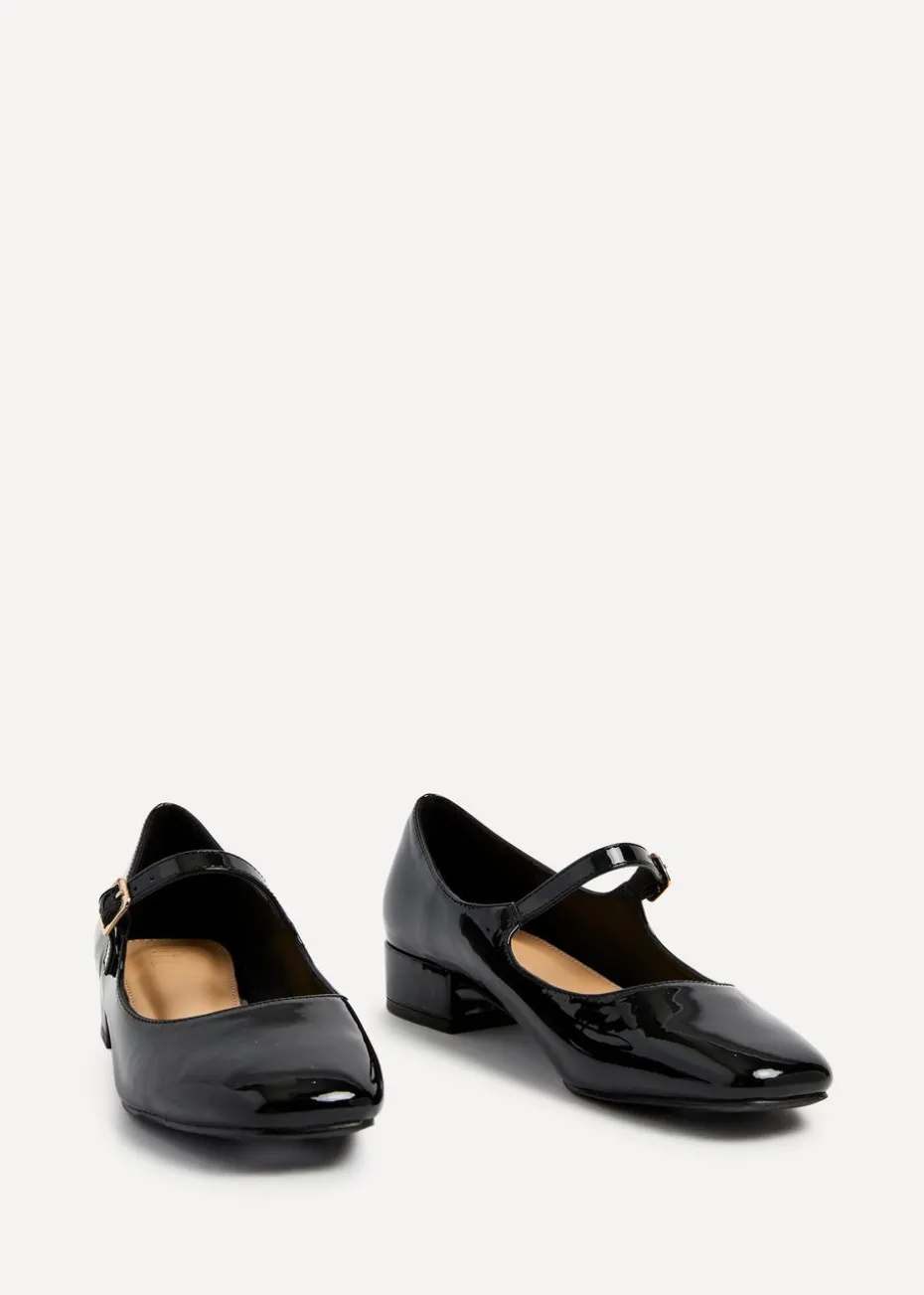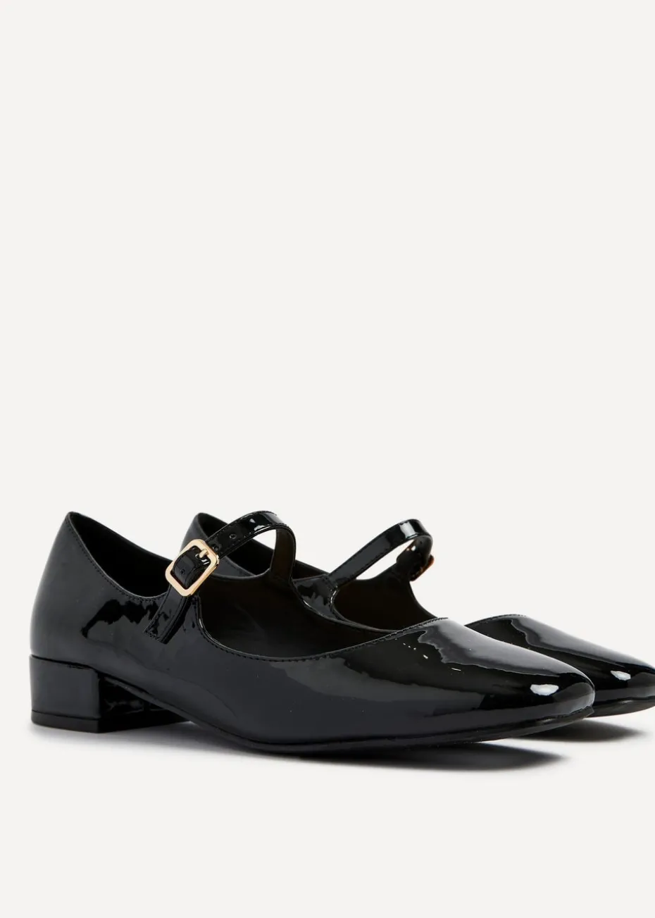 Linzi Carley Black Faux Patent Leather Low Block Court Shoe