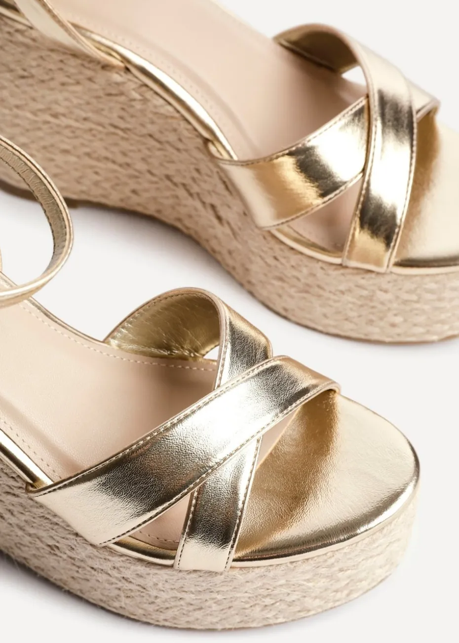 Be the first to review “Linzi Tahiti Gold Faux Leather Crossover Espadrille Wedge” Cancel reply