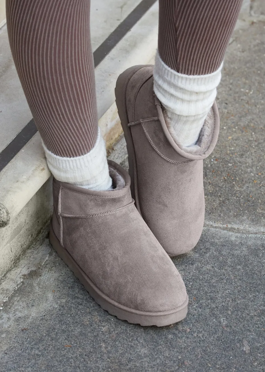 Luxuriously crafted with soft faux suede and a fully grey faux fur lined interior (extra soft), the Ultra Mini Addy ankle boot features a condensed rubber hard-wearing sole for lasting durability..