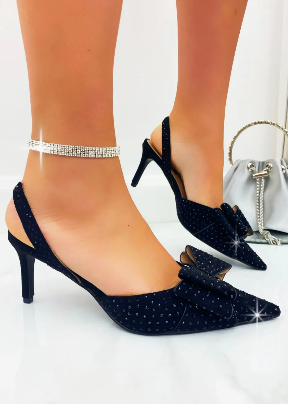 Embellished with an oversized bow detail then finished with a sparkling jewel rhinestones – perfect for adding a wow facto to any look!