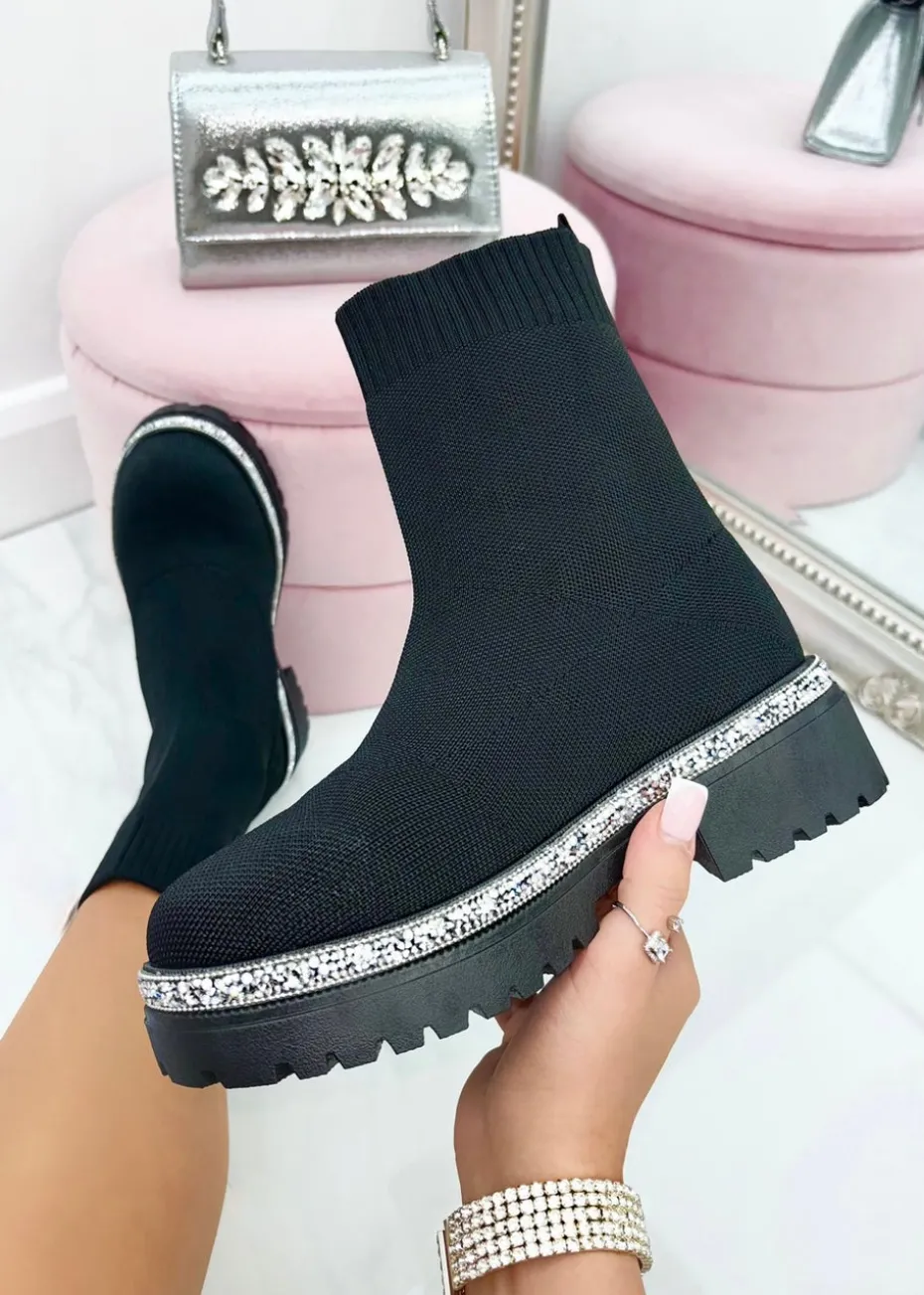 These boots marry comfort and style with a chunky sole for added traction and a touch of glam in the form of dazzling crystal trim.