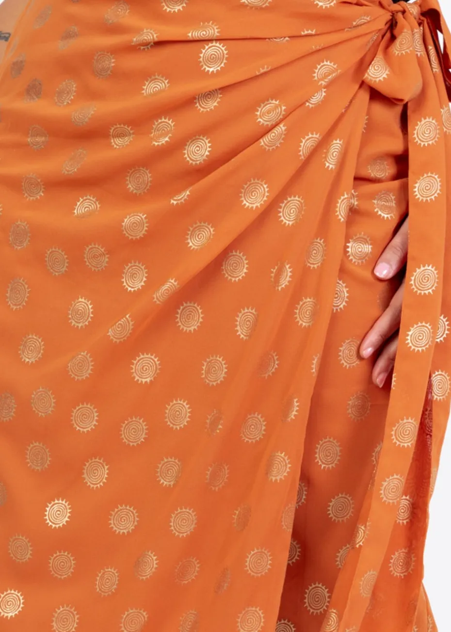 Elevate your wardrobe with this standout orange midi skirt. Designed with a flattering and adjustable functional wrap silhouette it ensures a perfect fit for all-day comfort. The eye-catching metallic finish takes centre stage featuring a meticulously placed swirl pattern that adds a touch of elegance and flair. Style it with a t-shirt and trainers for a laid-back casual look or pair it with a blouse and heels for an effortless evening ensemble