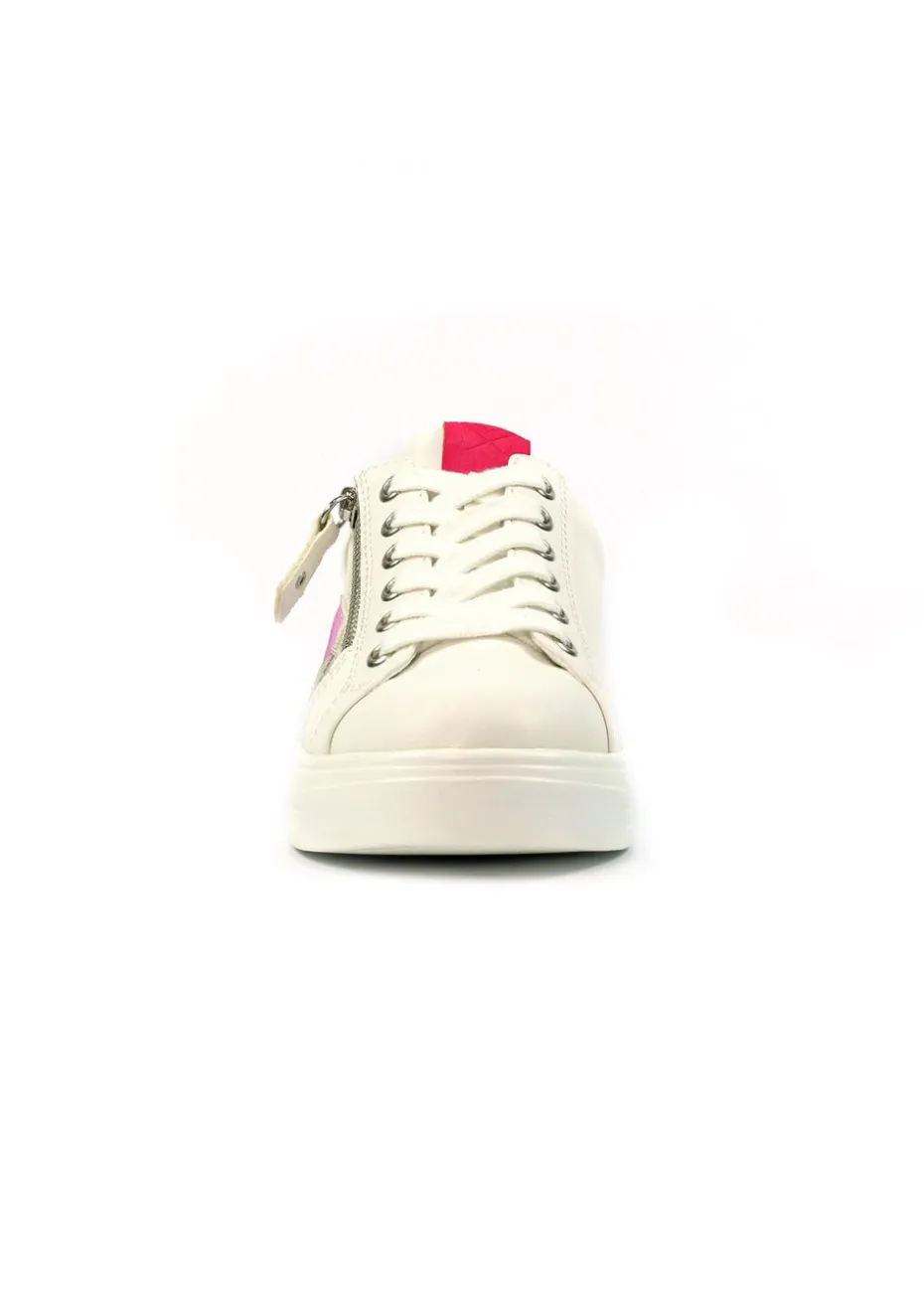 Look your best in the Angelica pink trainer. Featuring a mix of pink, red and silver panels, this trainer will add a touch of colour and shine to your seasonal style. With a lace-up front, padded insole and convenient side zip – staying on trend has never felt more comfortable.