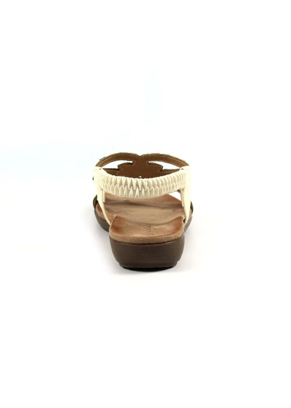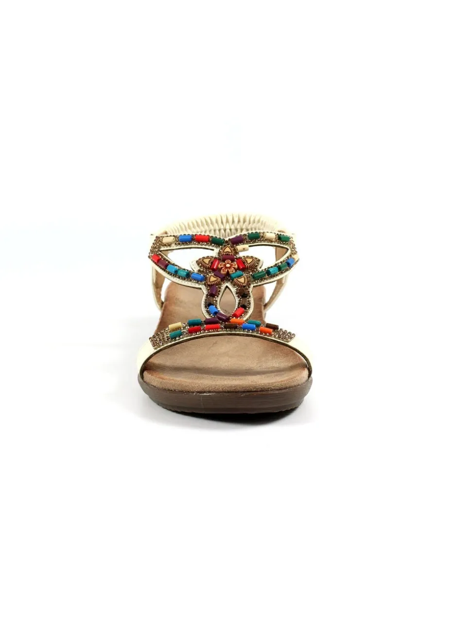 Make a colourful statement in the Mariella white sandal. Embellished with colourful beads and diamante details, this glitzy sandal is the perfect summer accessory. Featuring a padded insole and elasticated ankle strap, you are guaranteed a secure and comfortable fit all day.