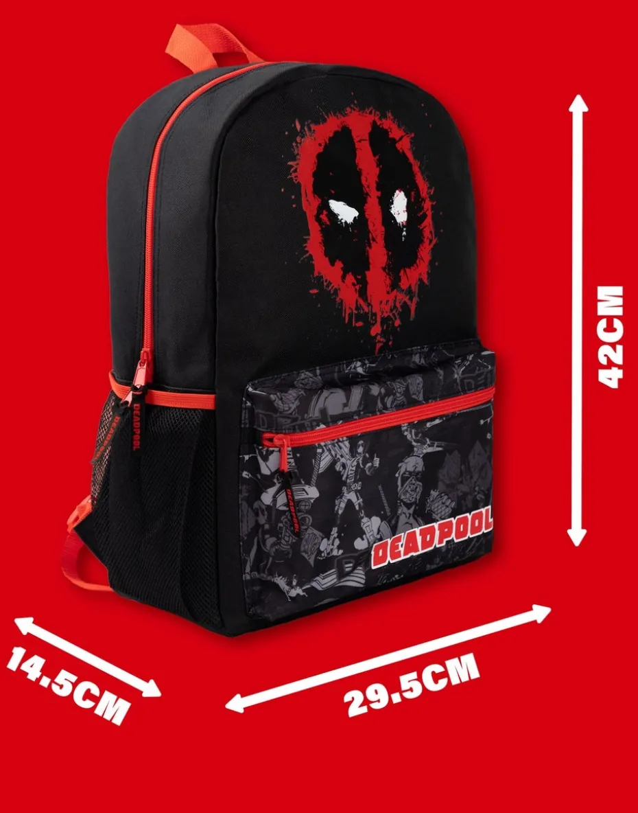 Unleash your inner hero with the Marvel Deadpool Boys Backpack! This dynamic black and red rucksack channels the wit and charm of the Merc with a Mouth. Picture your little hero gearing up for the day, strapping on this backpack that’s as bold and fearless as Deadpool himself. Equipped with adjustable straps and multiple compartments, this backpack is ready to tackle any mission – whether it’s navigating the halls of school or joining the X-Force (well, maybe just the playground team for now). The design captures Deadpool’s irreverent spirit, making it a must-have for any young Marvel fan. With this backpack, your little hero will feel like they can take on the world (or at least recess) with style and confidence. It’s time to suit up and embrace the superhero within!