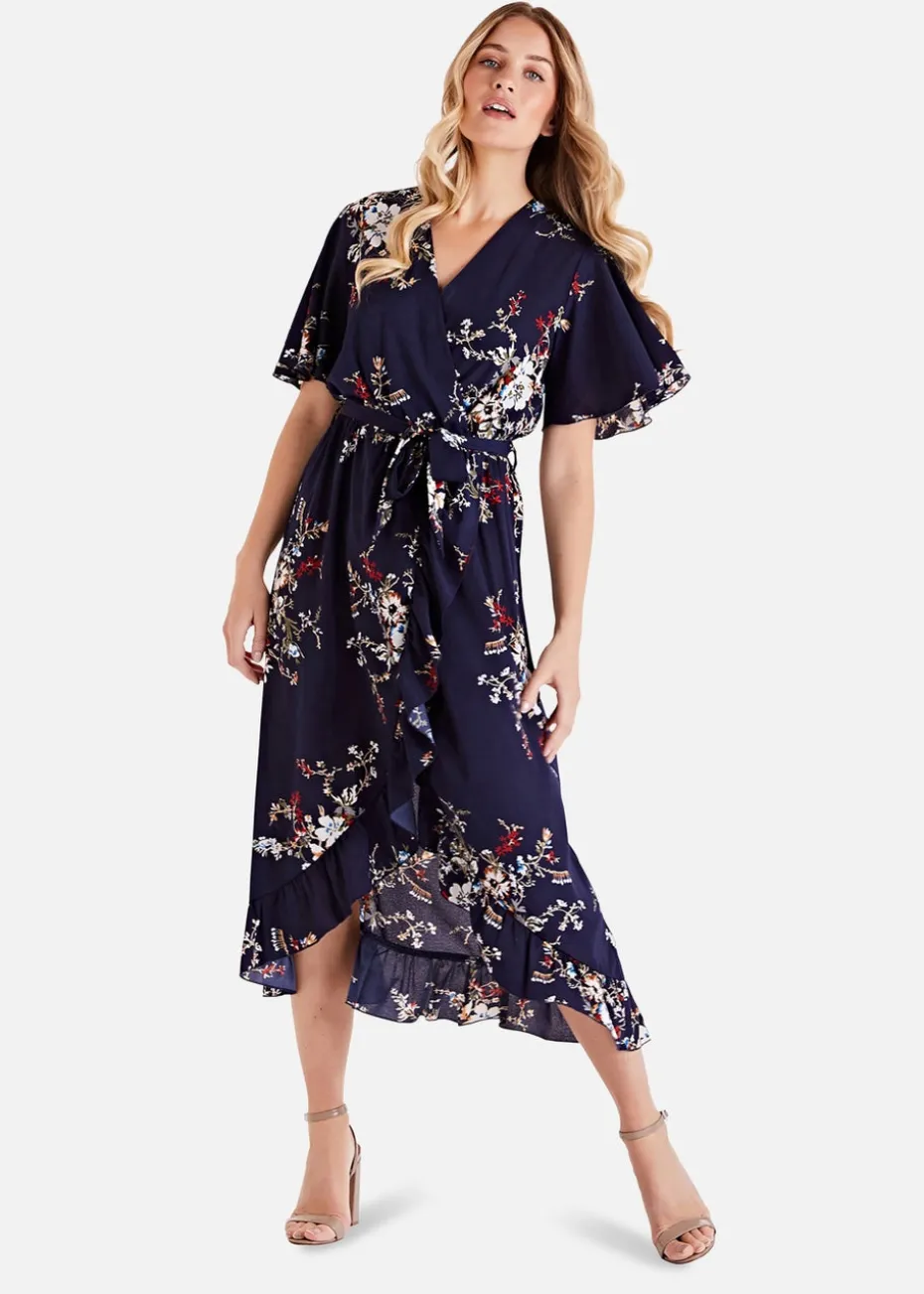 Never suffer a wardrobe dilemma again with this maxi dress. Complete with a waist tie at the front, this floral dress comes with a frill trim, soft-touch fabric and a sleek finish.