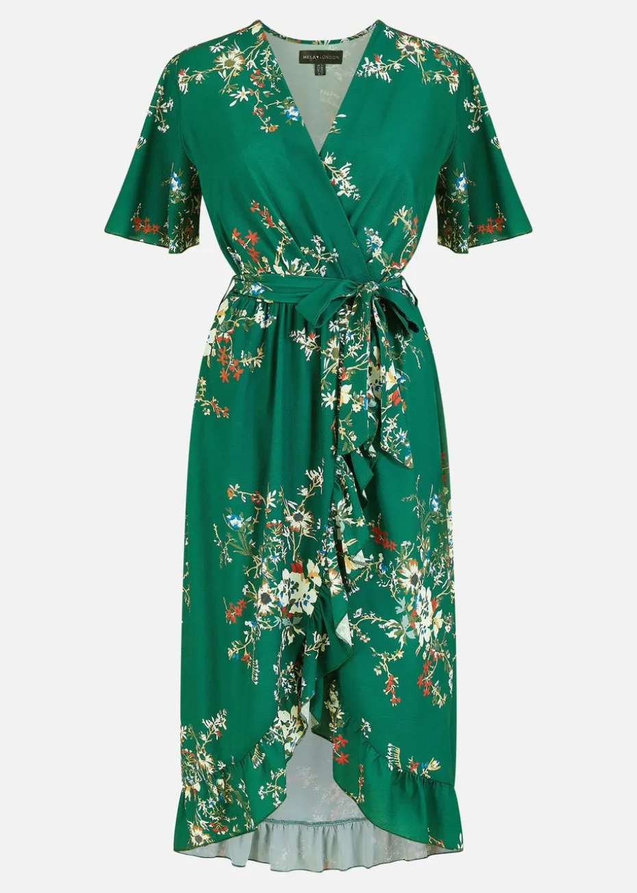 Be the first to review “Mela Green Floral Dip Hem Wrap Midi Dress” Cancel reply
