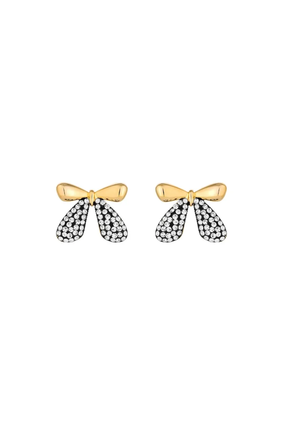 Mood Gold Black And Crystal Mini Bow Stud Earrings