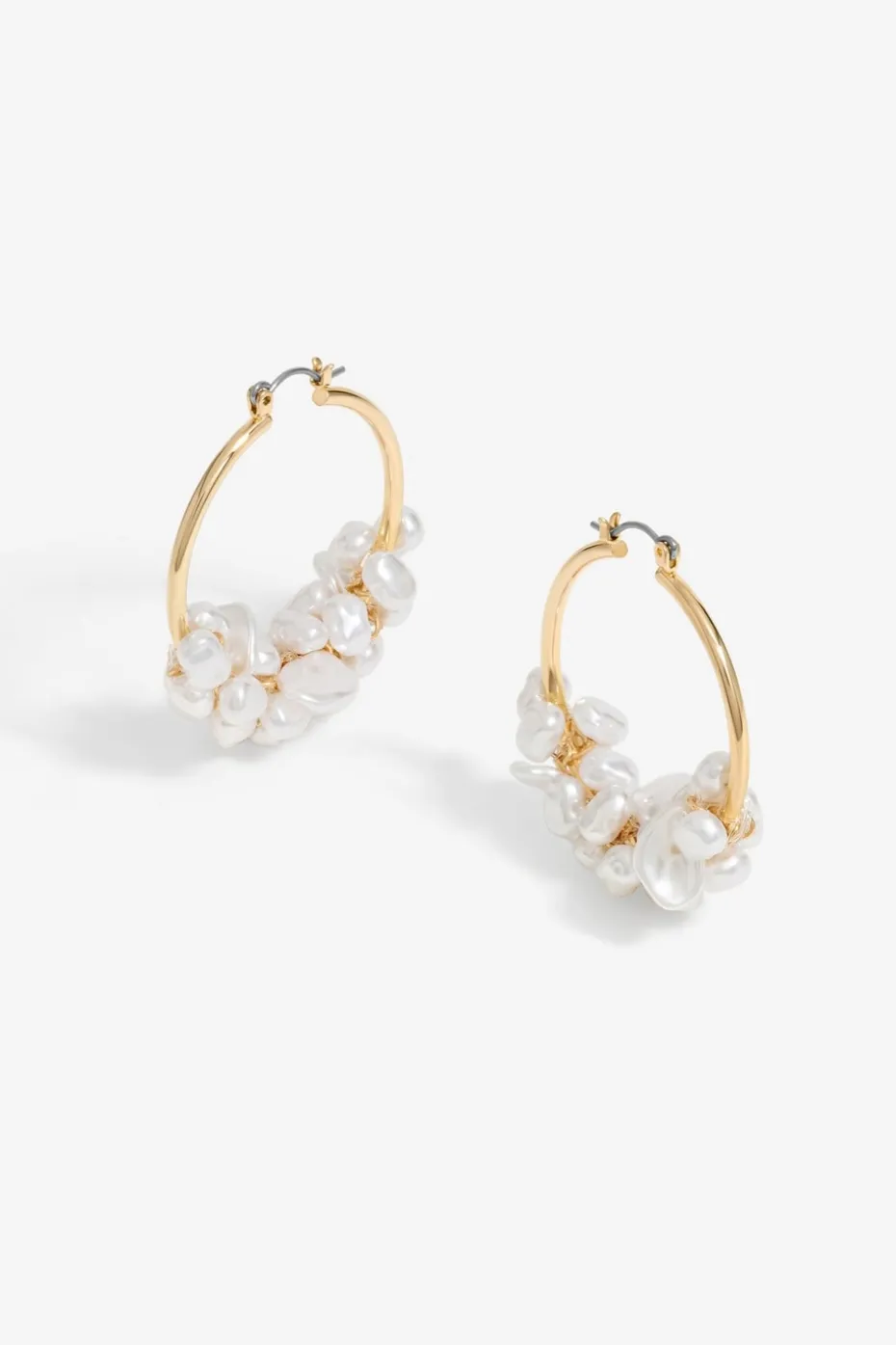 Our Mood Gold Pearl Cluster Hoop Earrings are a must have this season, designed with imitation pearls, these Earrings are perfect for Summer. Wear solo or layer up with other pieces to suit your style. Fastening: Post and Catch. Width Dimension: 30mm. Length Dimension: 30mm.