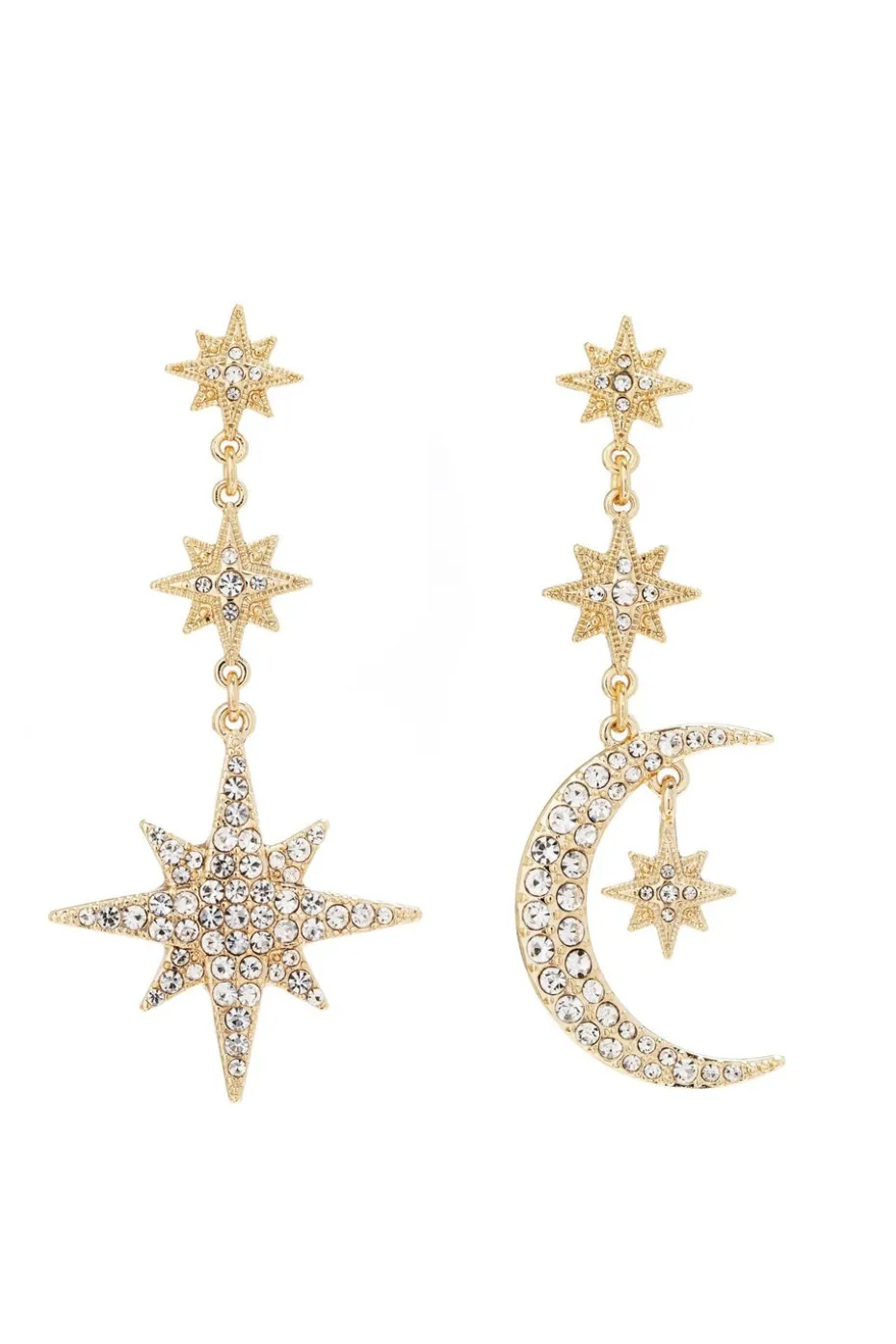 Mood Gold Plated Mix And Match Stars And Moon Drop Earrings