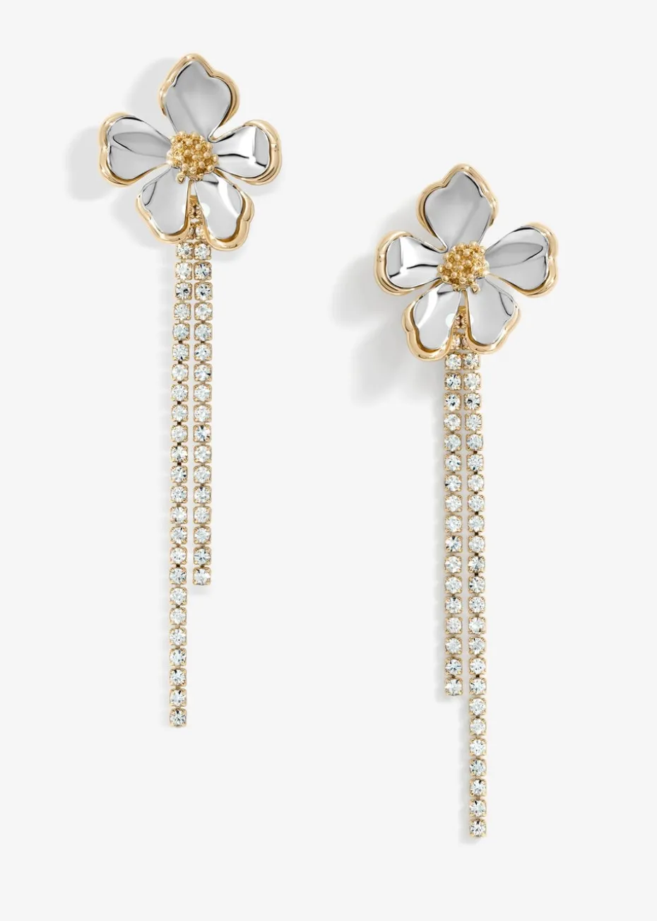 Mood Two Tone Flower Cupchain Drop Earrings