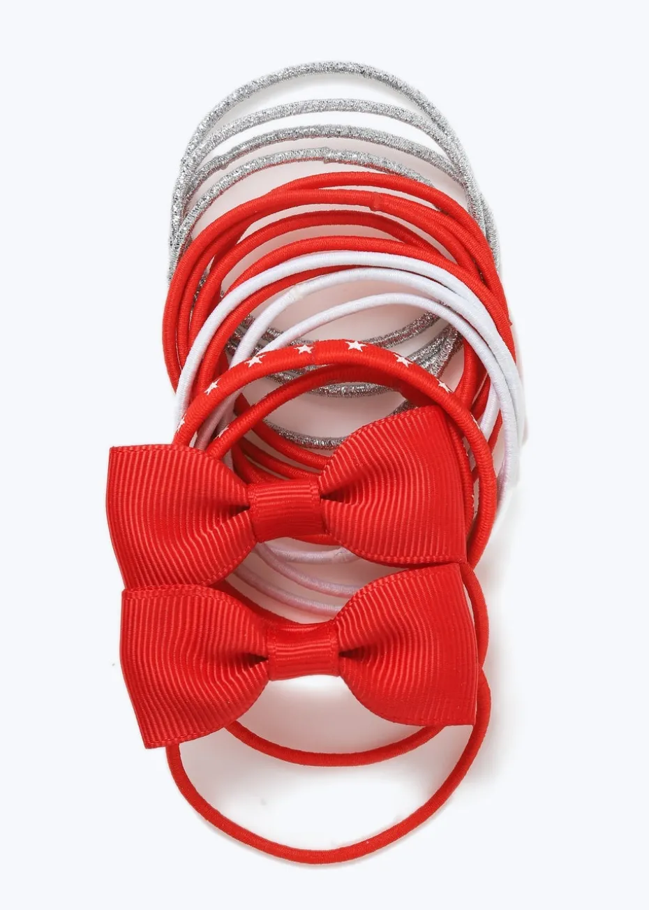Add a touch of charm and fun to any hairstyle with our Multipack Girls Red Bow Hair Bobbles. Perfect for everyday wear or special occasions, these hair bobbles combine functionality with a playful design. Each bobble features a vibrant red, silver and white colour and a cute, bow-shaped embellishment that adds a stylish flair to any look.