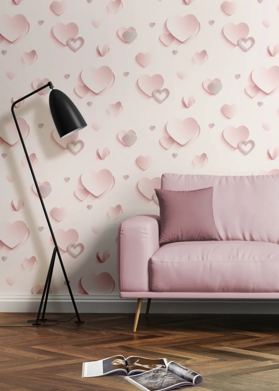 Muriva Glitter Hearts is a modern tonal design with 3D effect hearts scattered and brought to life with a touch of glitter. This pretty design is created with a high finish. Simple but effective. Dimensions L 10.05m x W 53cm