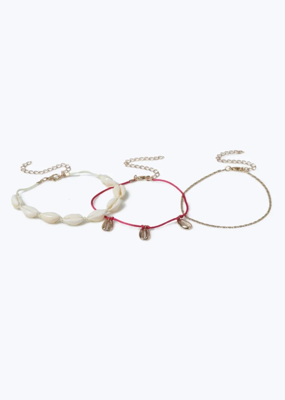 Step into beachy bliss with the Muse 3 Pack Pink Beach Anklets — a dreamy trio of anklets inspired by coastal adventures and golden hour strolls. Featuring delicate gold-tone chains adorned with seaside charms like shells, starfish, and sunbursts, each anklet brings a little sparkle and a lot of summer energy to your look.