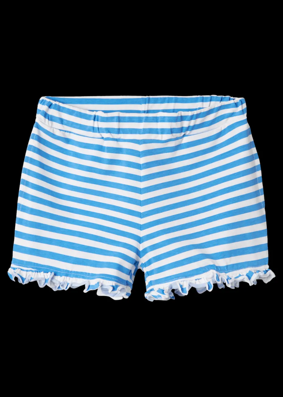 Add a touch of nautical charm to her summer wardrobe with the Name It Girls Blue Stripe Frill Shorts. Crafted from soft and breathable cotton, these shorts are designed to keep her comfortable during warm-weather adventures. The classic blue and white stripe pattern offers timeless style, while the delicate frill hem adds a playful, feminine touch.