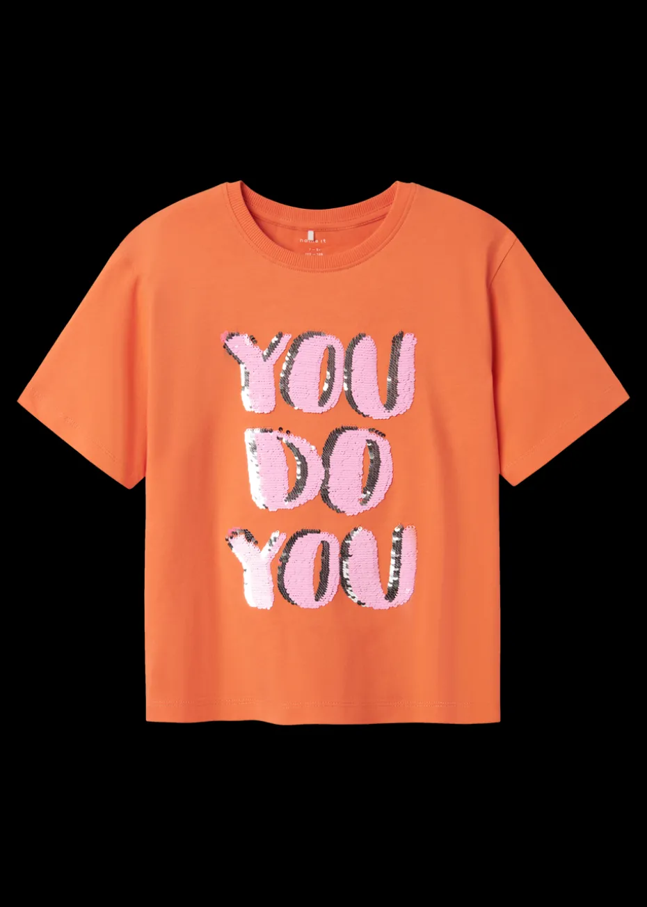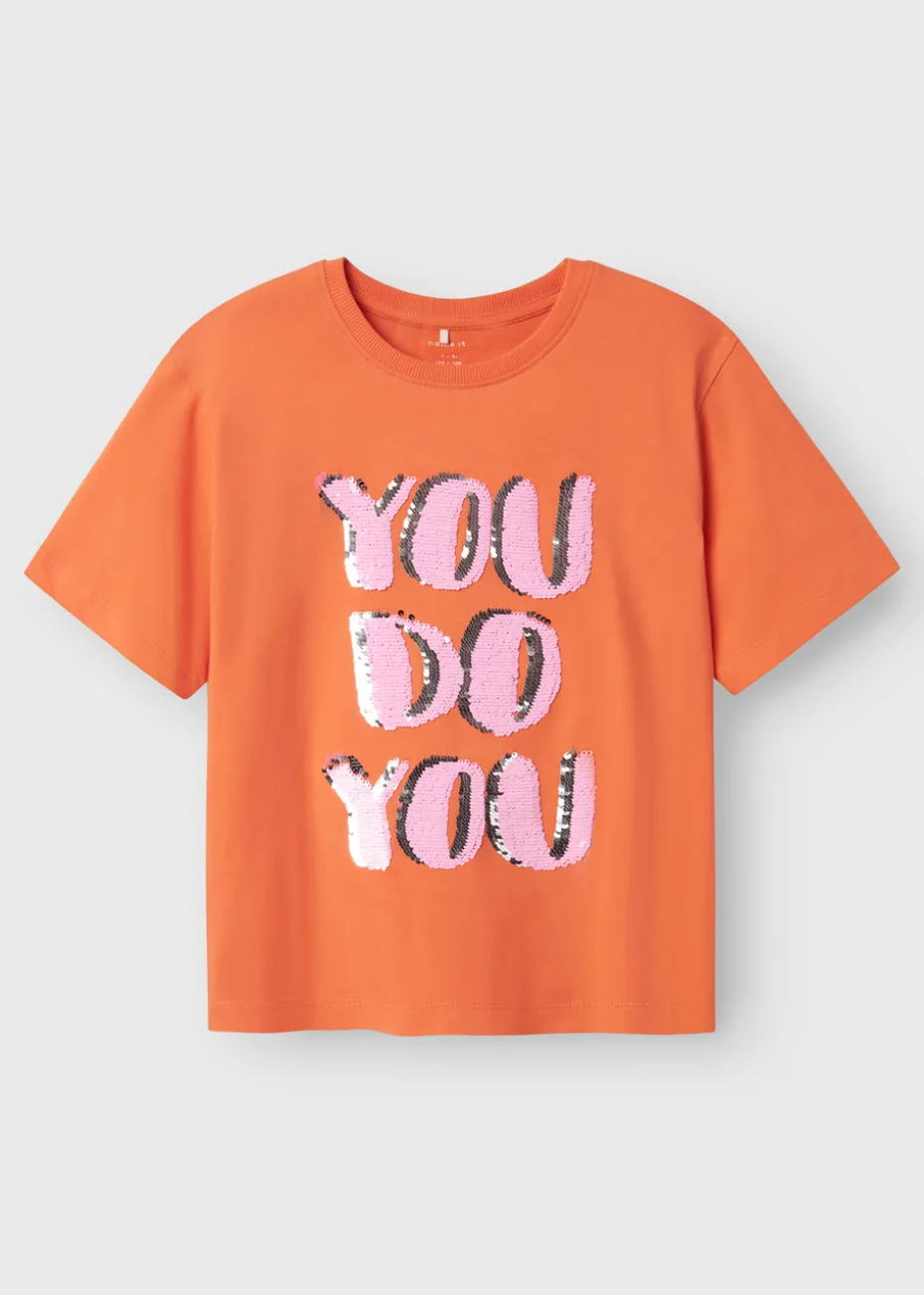Add a pop of positivity to her wardrobe with the Name It Girls’ Orange “Yo Do You” T-Shirt. Crafted from soft, breathable cotton, this vibrant tee ensures all-day comfort for active kids. The bold orange hue is complemented by a playful “Yo Do You” graphic on the front, encouraging self-expression and confidence.