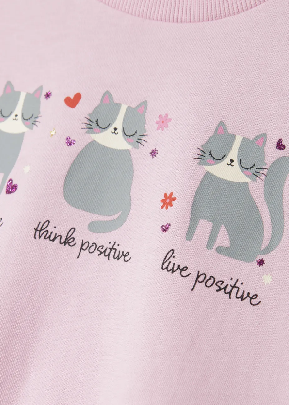 This T-shirt from NAME IT is crafted from pure, soft cotton and features a relaxed fit for all-day comfort. It has a classic crew neck and short sleeves. The pale pink hue will ensure your little one will stand out from the crowd. Featuring a cat graphic and positive slogans.