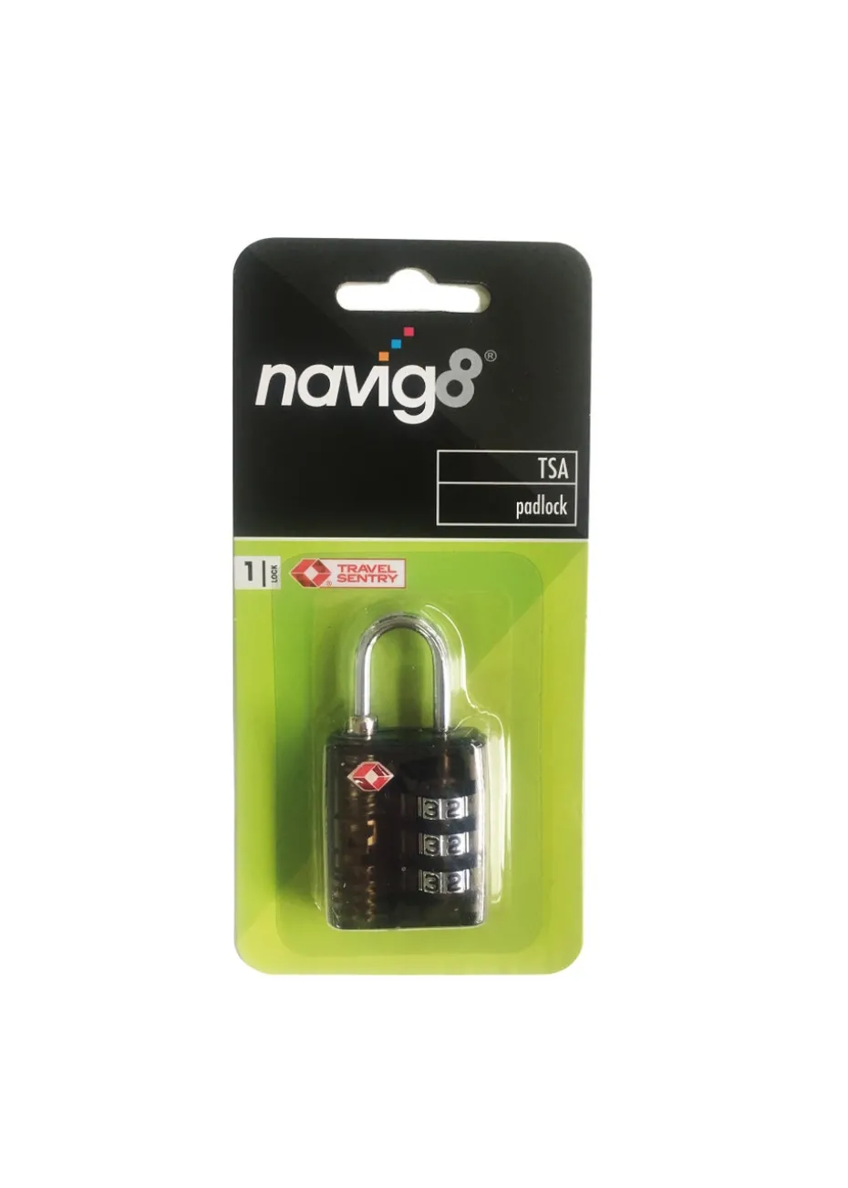Help keep your luggage safe and secure with this TSA-approved travel padlock from Navig8. The three-digit combination lock provides extra security to any suitcase, travel bag or backpack with zip closures. The practical combination feature means no more worrying about misplaced keys!