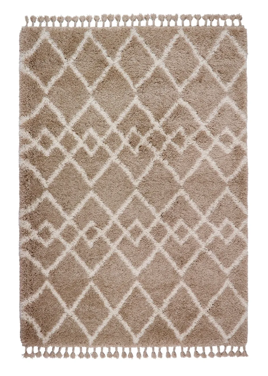This deep pile shaggy rug features a moroccon style design, woven using 100% heat set polypropylene this rug is stylish, hard wearing and long lasting. Pair with some Moroccon style accessories for the perfect addition to your interior.
