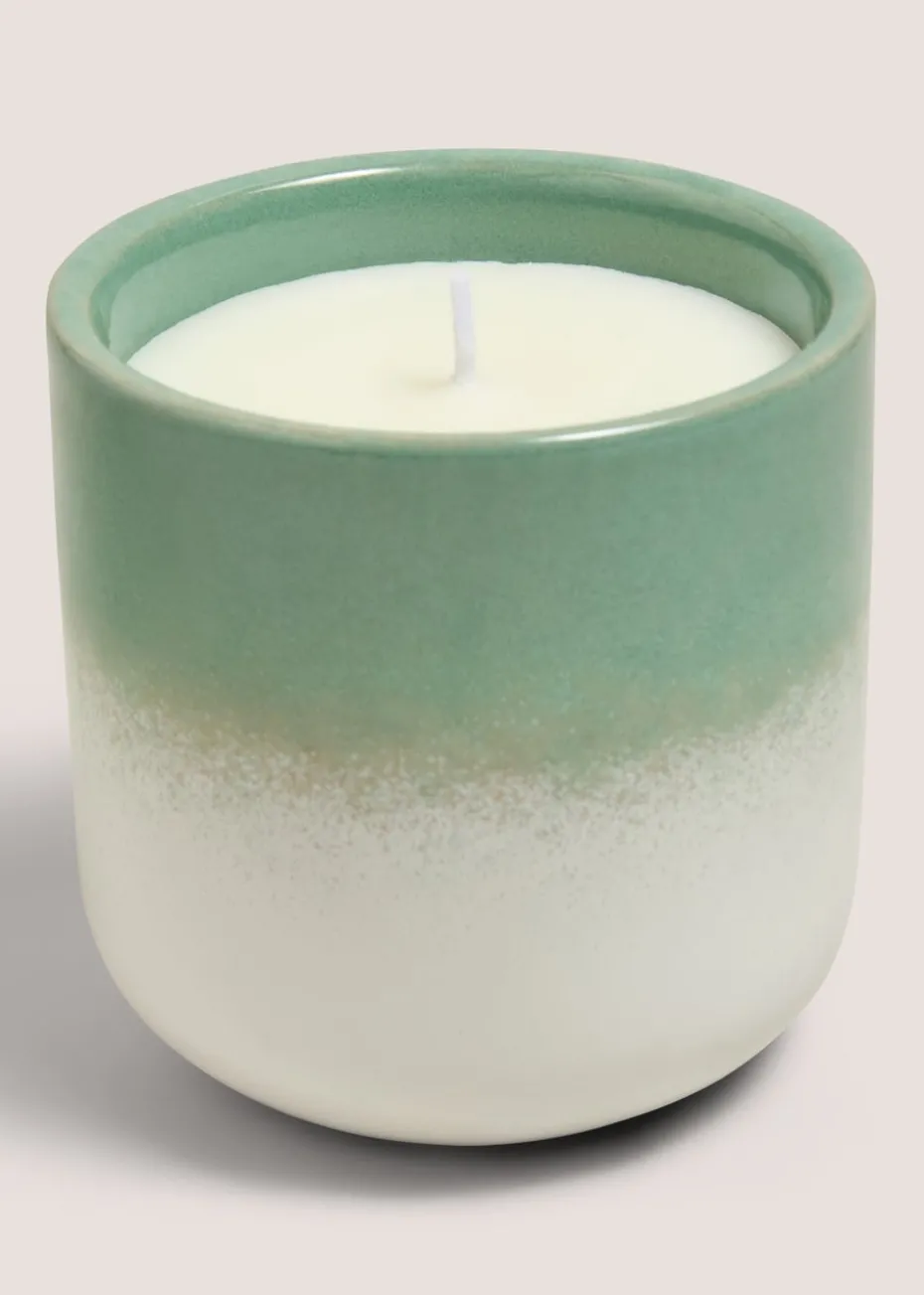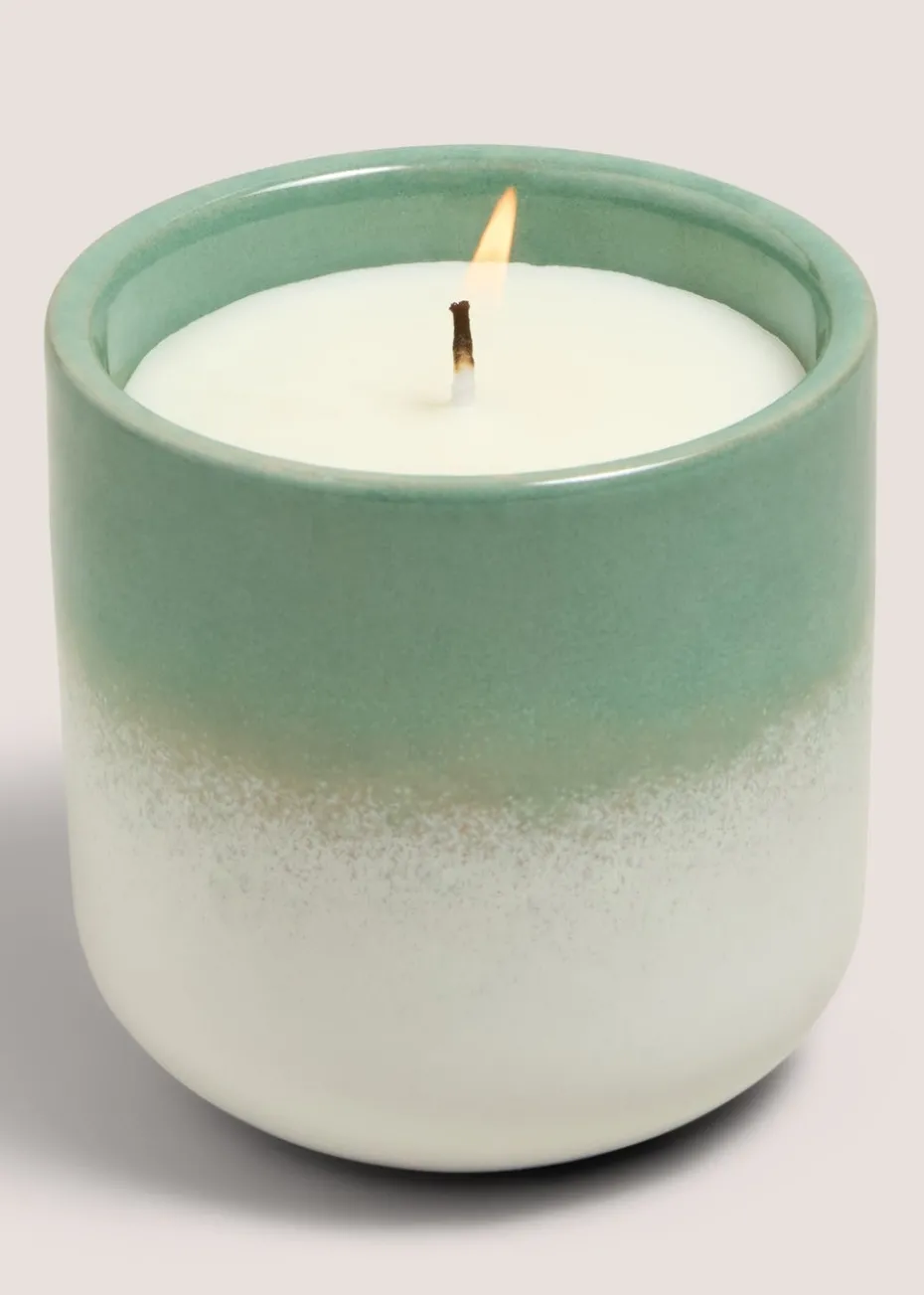 The Pale Green Reactive Glaze Candle is a stunning decorative piece that combines warmth and elegance. Featuring a pale green ceramic vessel with a unique reactive glaze finish, this candle is as much a piece of art as it is a source of relaxation. Its inviting scent makes it perfect for enhancing the ambiance of any room.