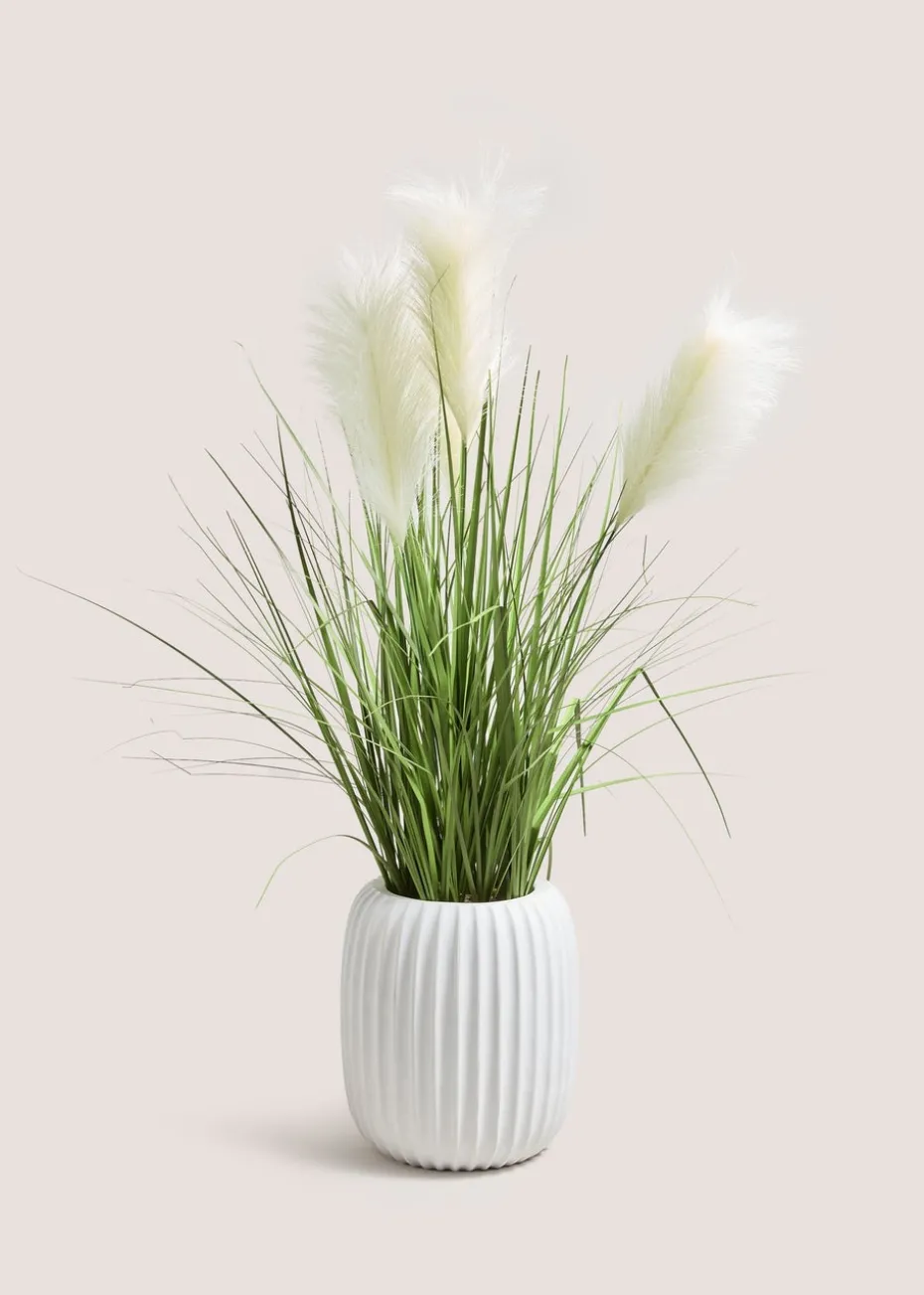 Add elegance and texture to your décor with the Pampas in Ribbed Pot, a sophisticated statement piece that combines natural beauty with modern design. Featuring fluffy, lifelike pampas grass arranged in a chic ribbed pot, this arrangement brings effortless style to any room.