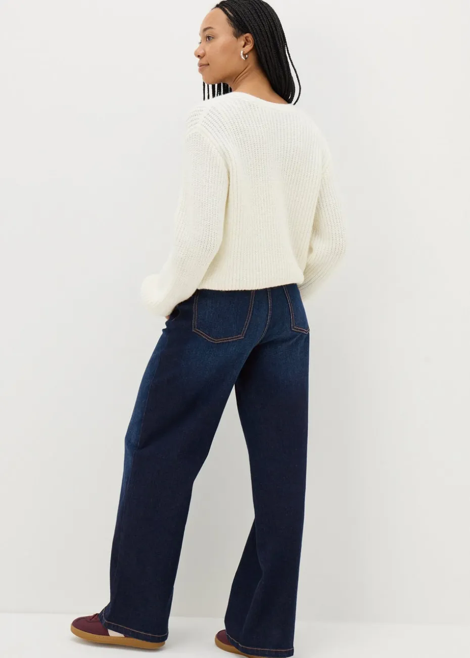 Elevate your denim collection with the Papaya Petite Dark Wash Wide Leg Jeans, designed specifically for women 5’3″ and under. These jeans feature a flattering high waist and a relaxed, wide-leg cut that elongates your silhouette, offering both comfort and style. Crafted from high-quality dark wash denim, they pair effortlessly with everything from crisp button-downs to cozy knits, making them a versatile addition to your wardrobe.