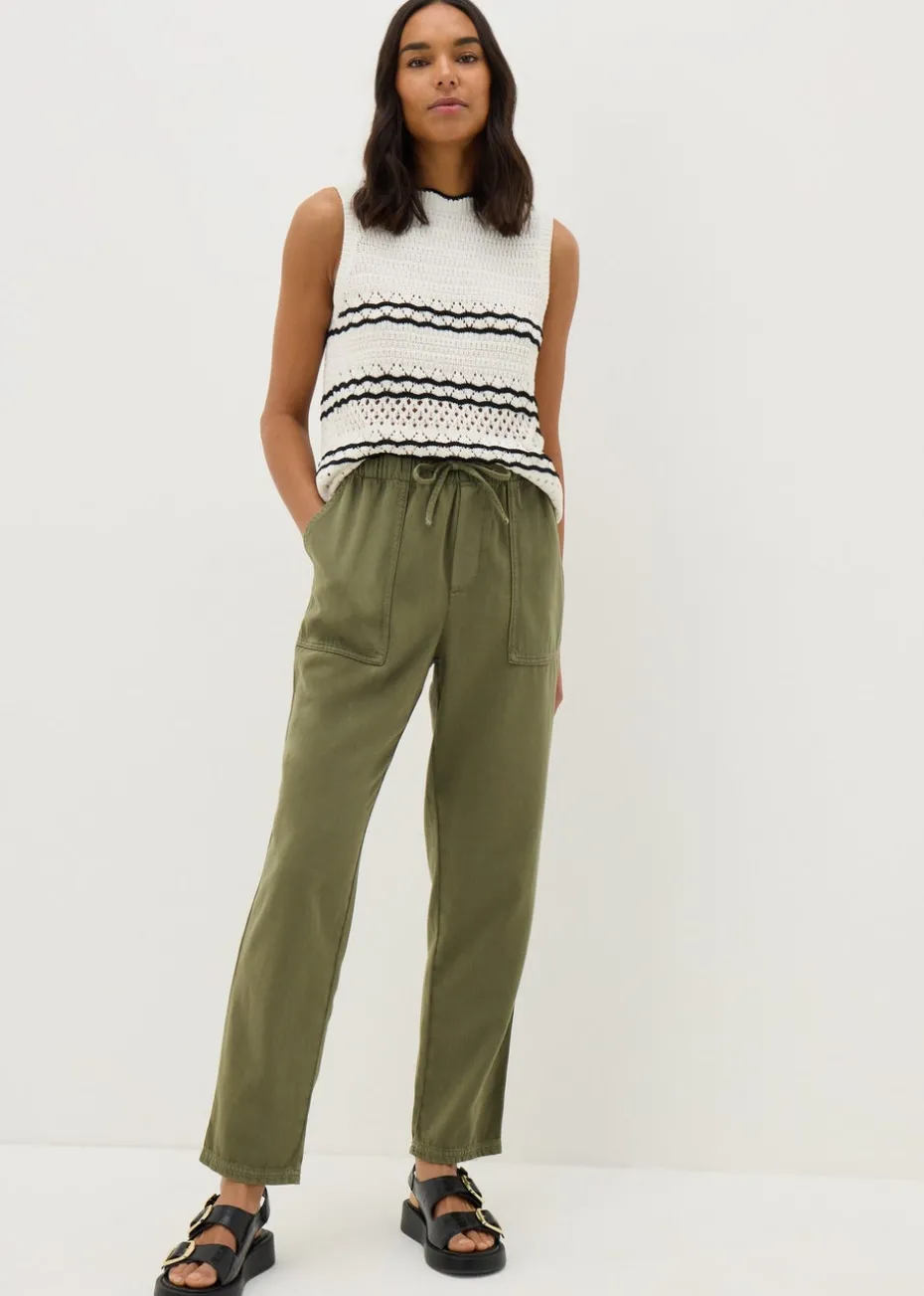 Combining comfort with cool, the Papaya Petite Green Utility Jogger Trouser is your go-to for off-duty style with an edge. Designed specifically for petite frames, these joggers feature a flattering high-rise fit and a tapered leg for a sleek, modern silhouette.