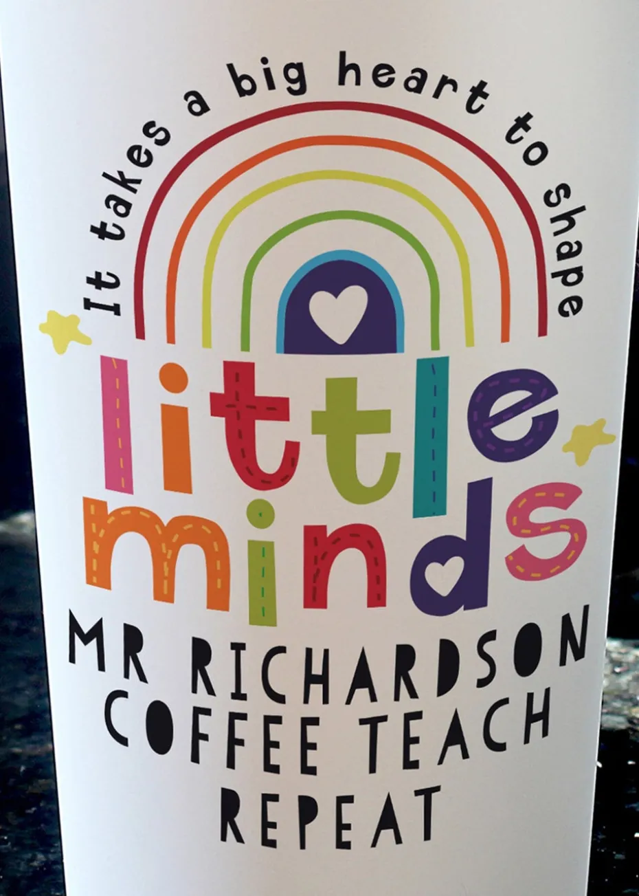 The words ‘It takes a big heart to shape little minds’ are fixed and cannot be amended.