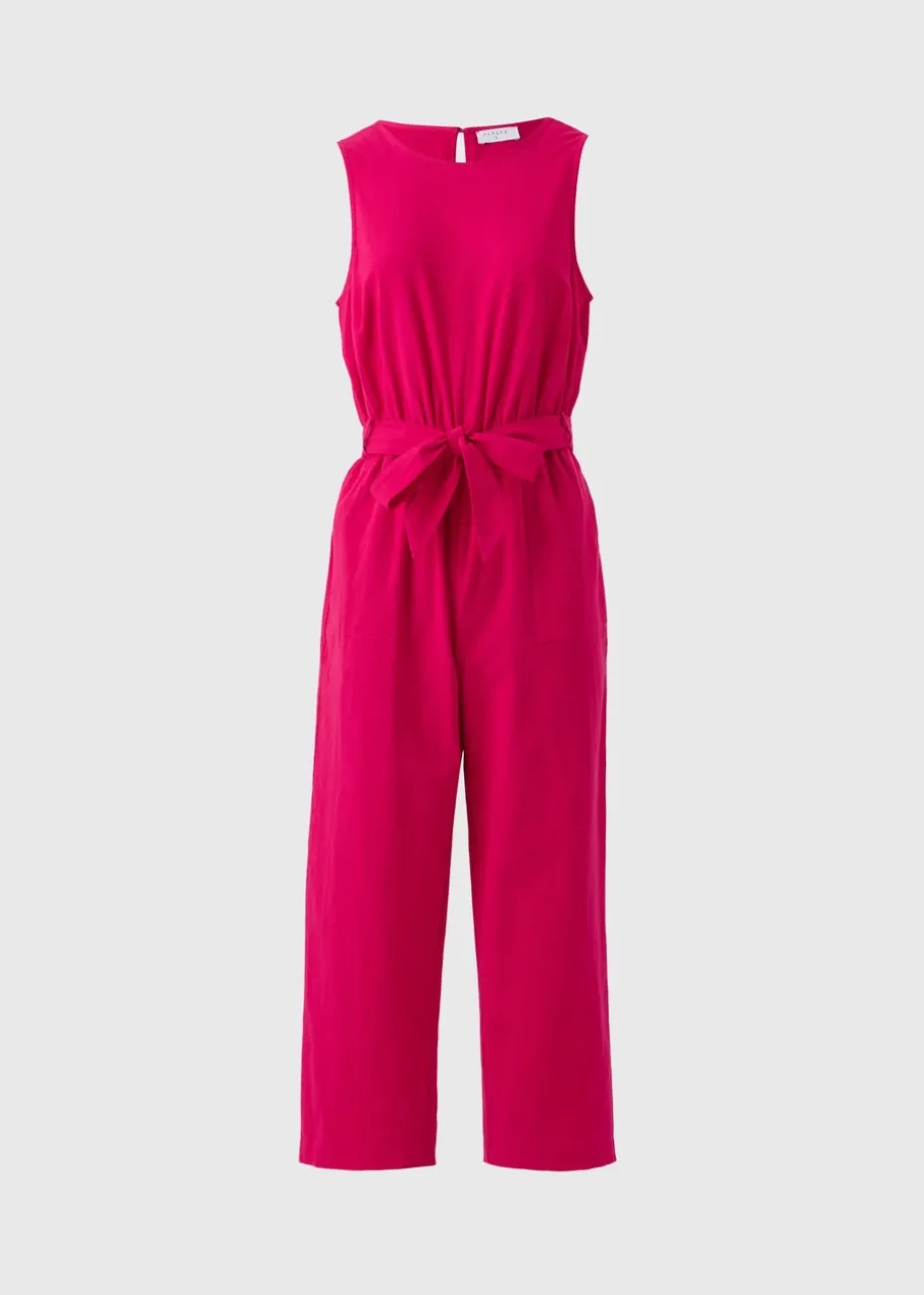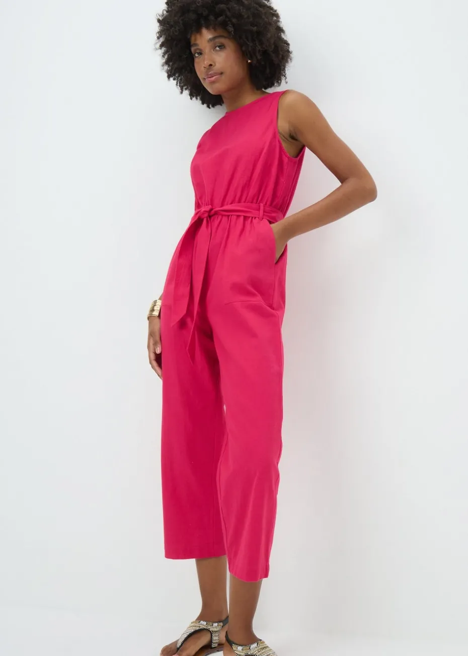 Effortless style meets all-day comfort in this Pink Linen Blend Tie Waist Jumpsuit. With its clean lines and flattering silhouette, this one-piece features a sleeveless design and a soft fabric that drapes beautifully. The adjustable tie waist cinches in for definition, while the straight-leg cut keeps the look sleek and versatile. Whether you’re heading to brunch, the office, or an evening out, this jumpsuit is an easy win.