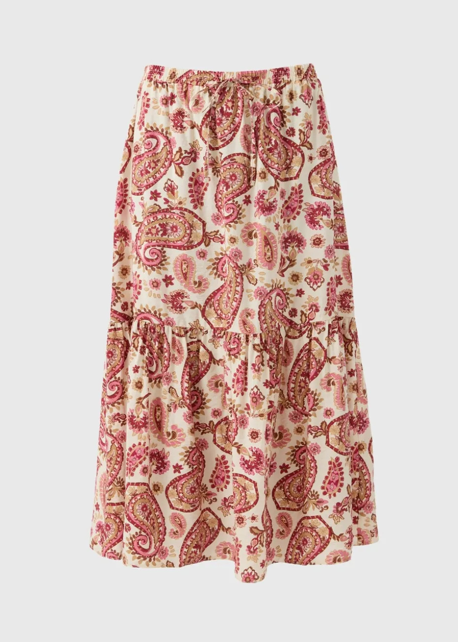 Float through the season in style with our Pink Paisley Print Tiered Midaxi Skirt, a romantic blend of boho charm and effortless elegance. Featuring a soft pink palette with a delicate paisley pattern, this skirt brings a timeless, feminine touch to your everyday wardrobe.