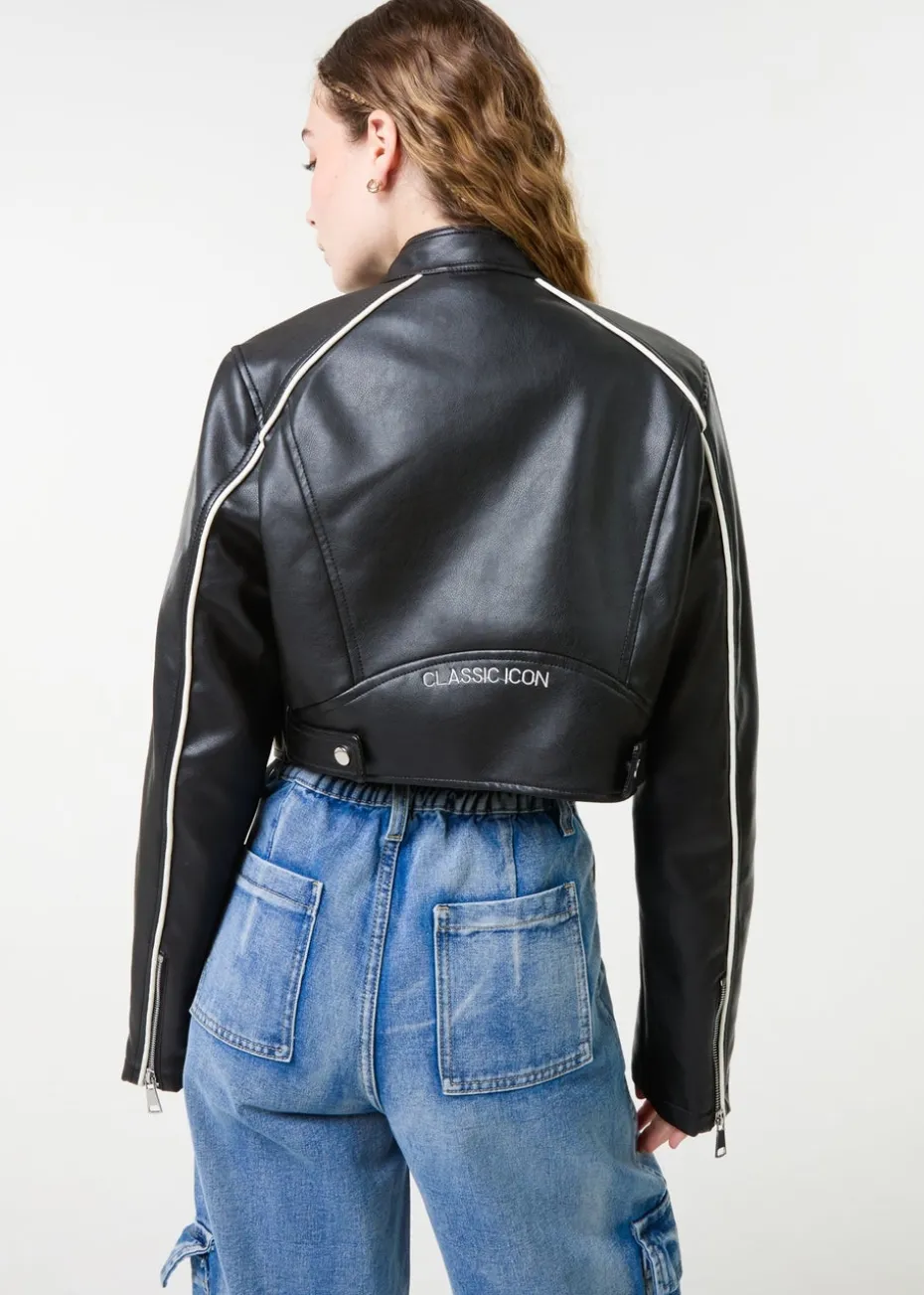Pink Vanilla Black Badge Racer Cropped PU Jacket