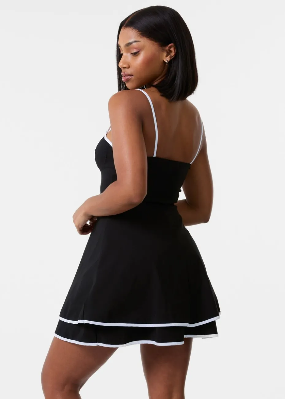Pink Vanilla Black Contrast Binding Tiered Mini Dress