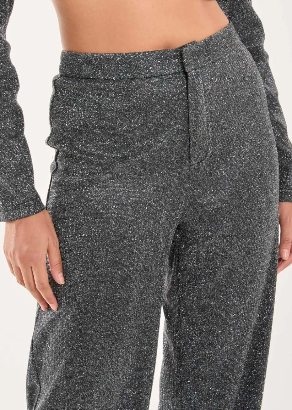 Get ready to party in these Glitter High Waisted Trousers. Grab your girls and hit the dancefloor in the party ‘fit of the season. Finish the look with our Glitter Cropped Blazer.