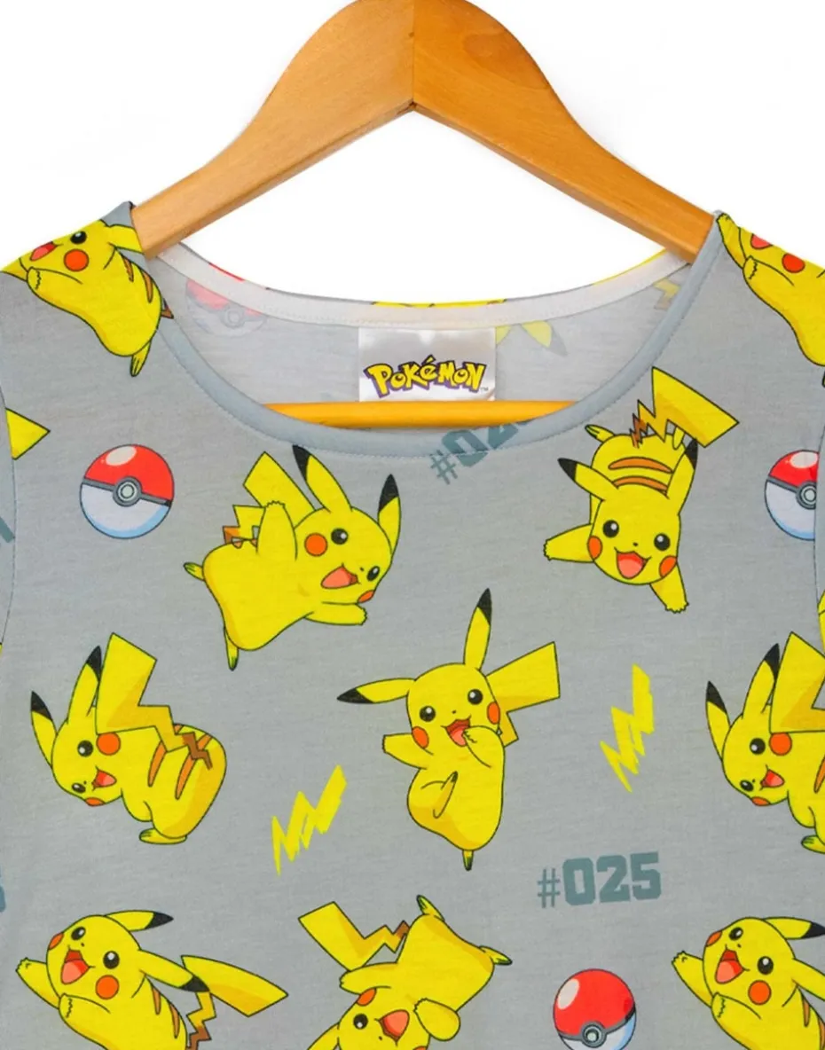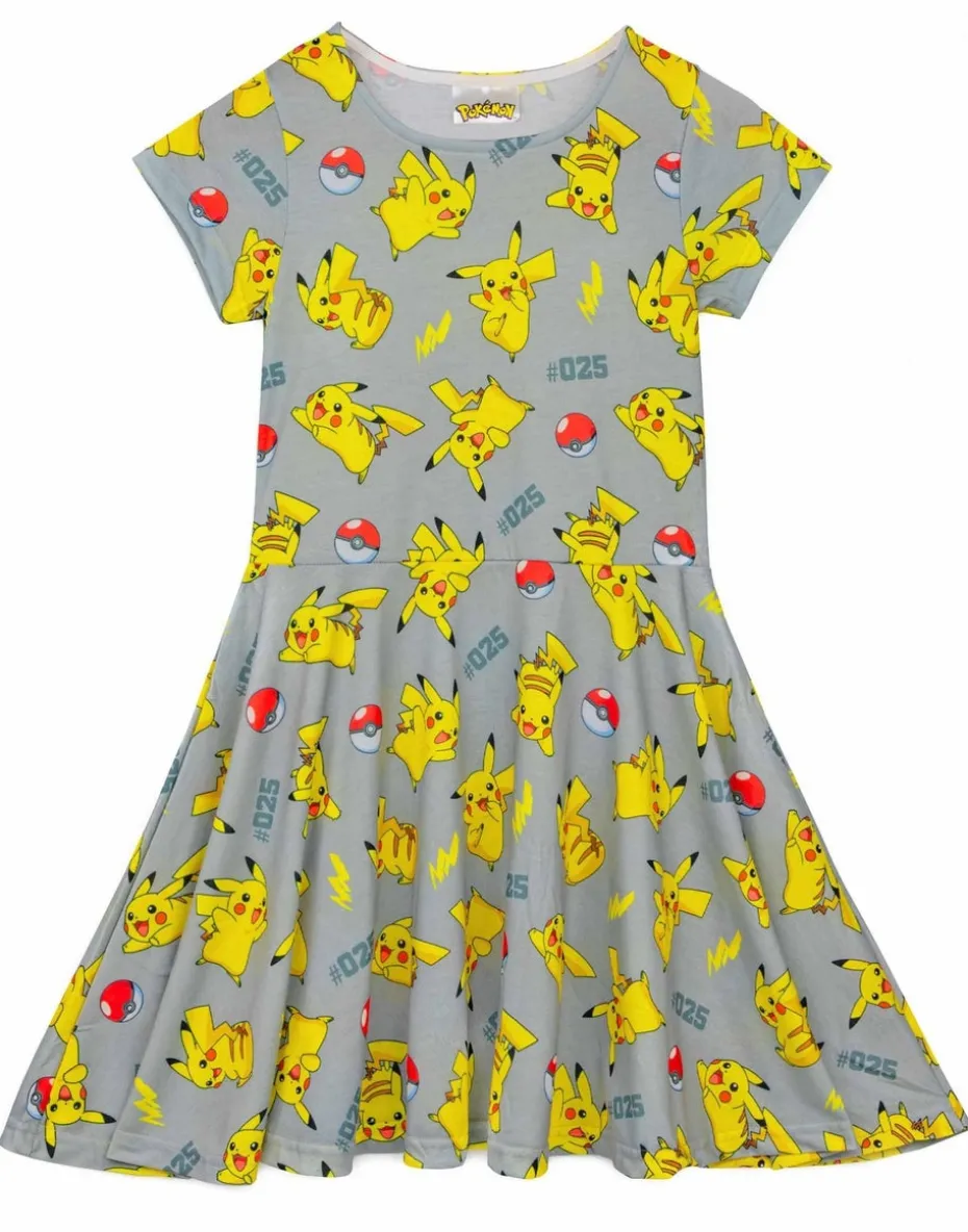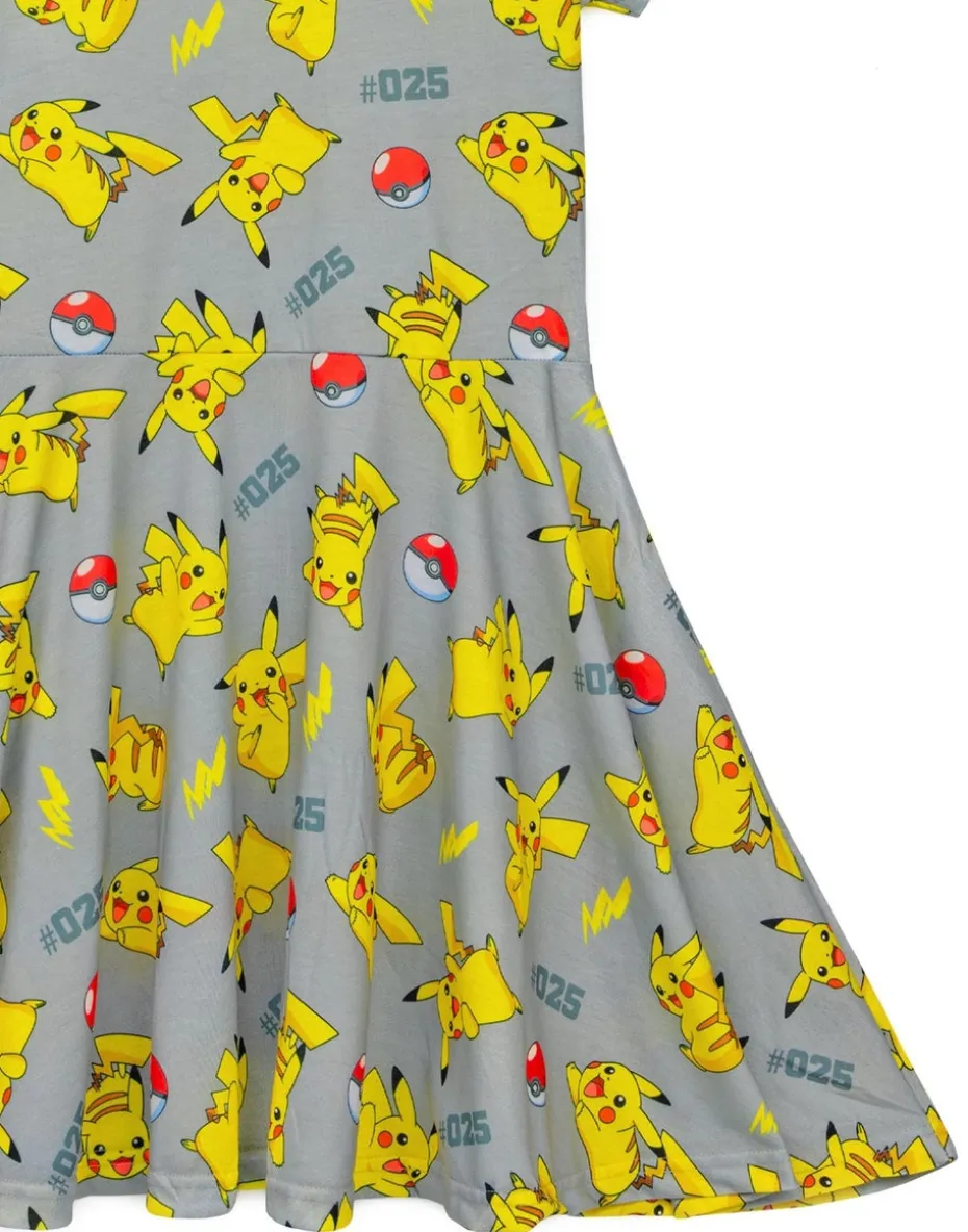 Pokemon Pikachu Grey Kids Short Sleeved Skater Dress (5-14 Years)