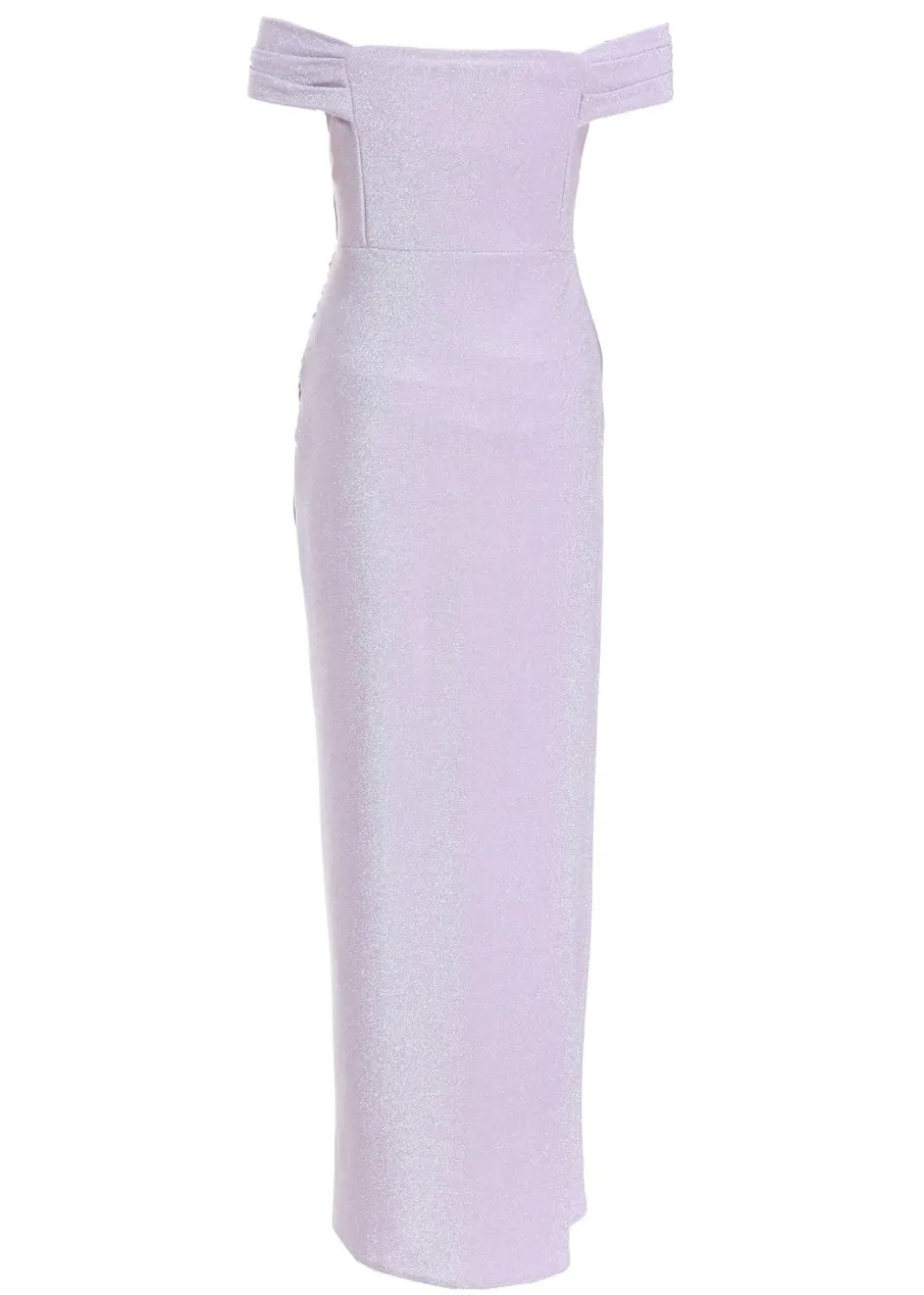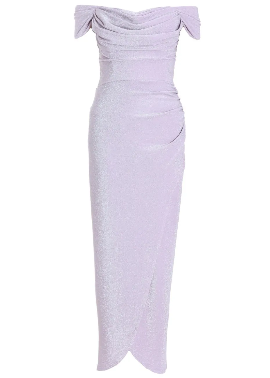 Be the first to review “Quiz Purple Glitter Bardot Ruched Maxi Dress” Cancel reply