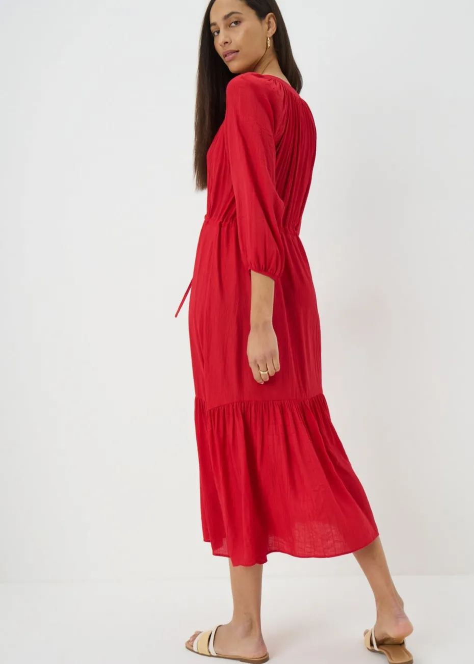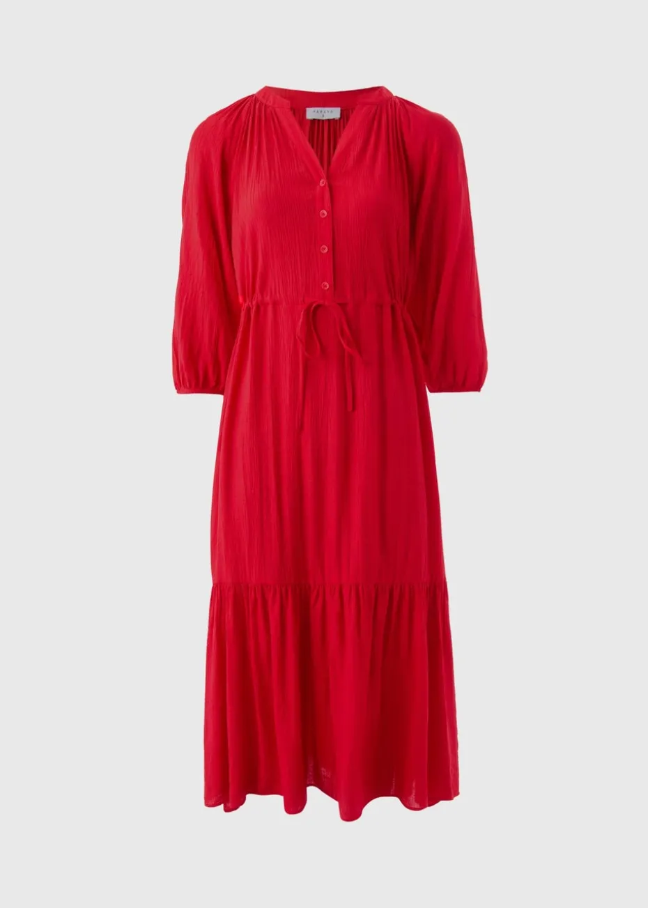 The Red Raglan Midi Shirt Dress combines sporty raglan sleeves with the classic charm of a shirt dress. Made from soft, breathable fabric, it features a button-down front and a flattering midi-length silhouette, perfect for casual or smart-casual outings. Pair with sneakers or sandals for effortless style.