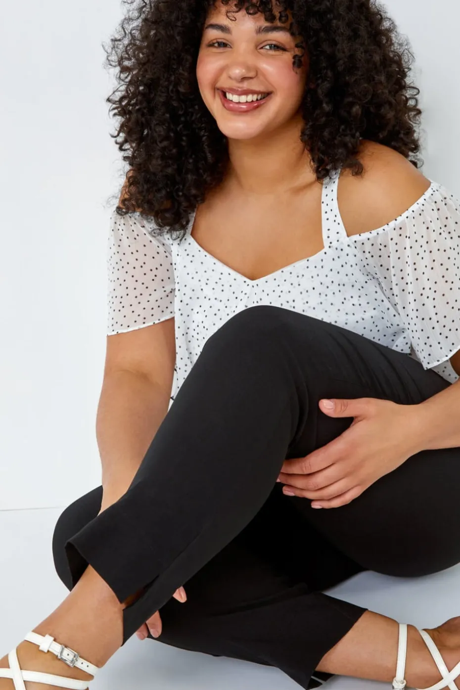 Curve Elastic Waist Full Length Trousers from Roman. A basic essential for every wardrobe, these roman curve full-length bengaline trousers are perfect to wear with tops, tunics and dresses. Made with just the right amount of stretch for a comfortable and flattering fit, these trousers are available in a variety of colours and are the perfect way to complete your look.