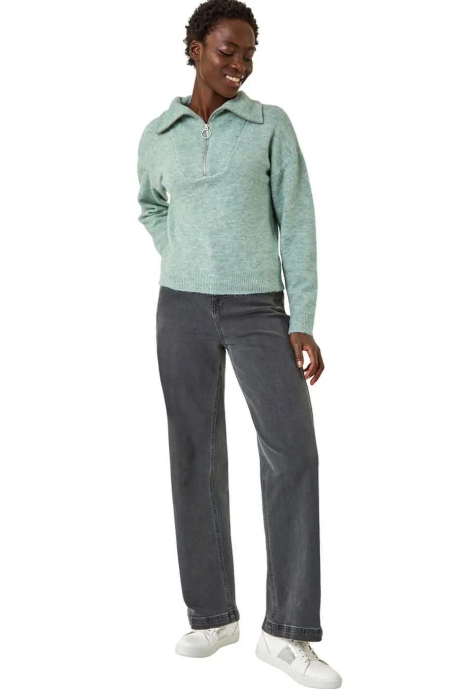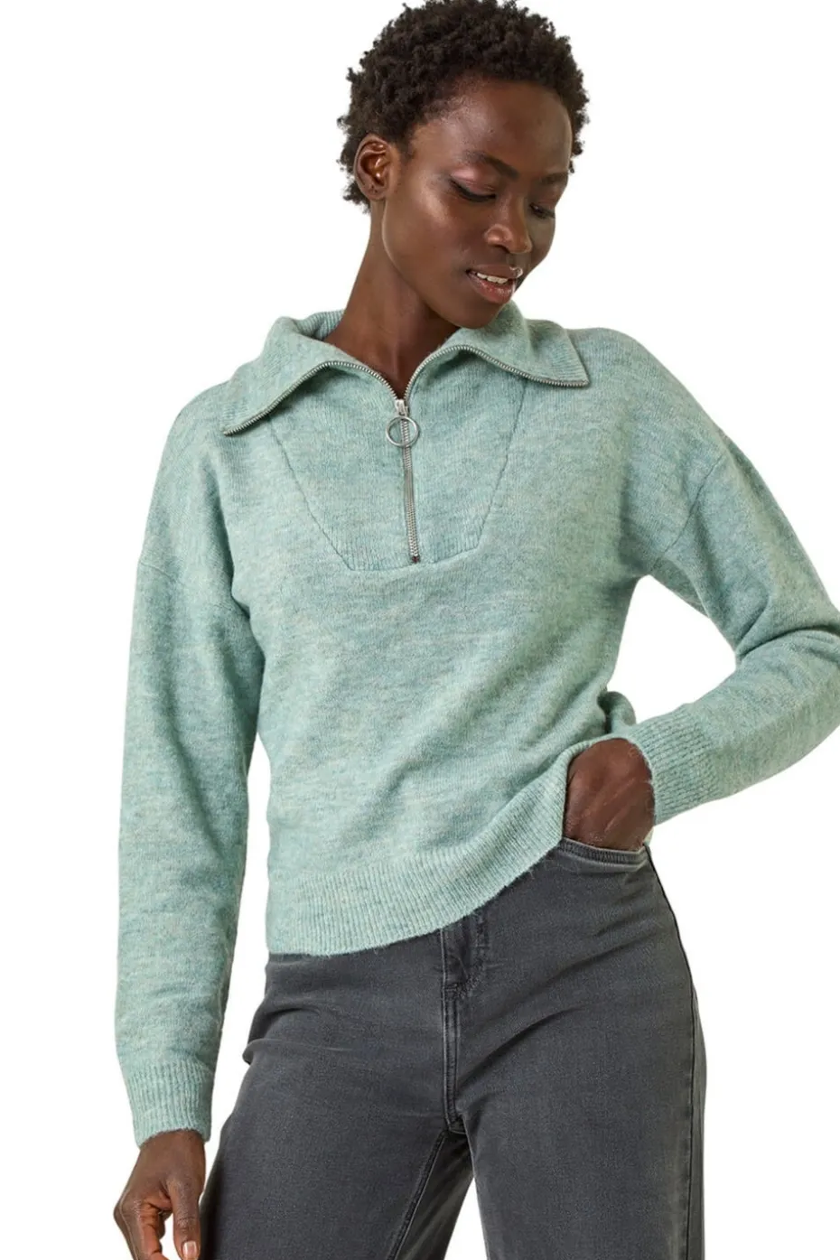 Collar Zip Neck Knit Jumper from Roman. Keep it cosy and stylish with this classic collar zip neck jumper. Designed with long sleeves and a soft hand touch, this jumper is perfect for keeping you warm throughout the season. The collar zip neck adds a touch of sophistication, making it a versatile piece to pair with your favourite jeans and ankle boots for a chic and effortless look.