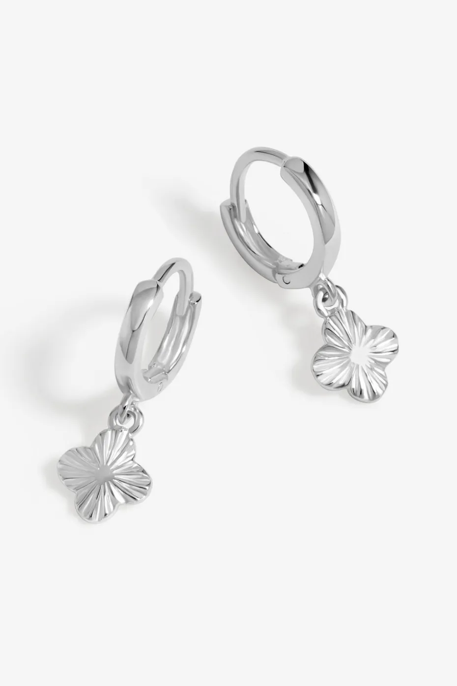 Simply Silver Sterling Silver 925 Polished Diamond Cut Clover Charm Hoop Earrings