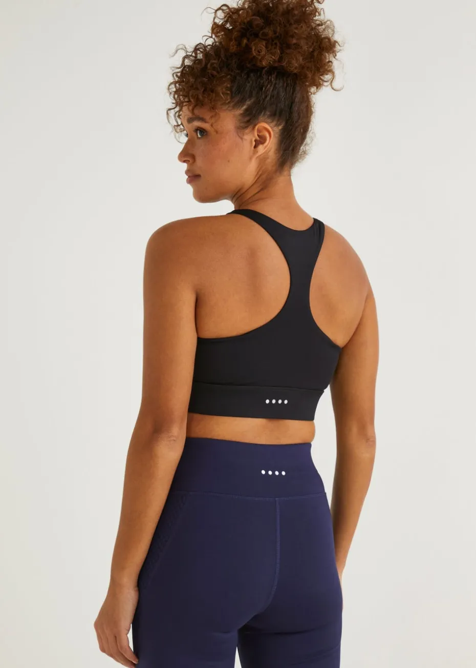 Stock up on your gym essentials with this comfy crop top from our Souluxe collection. Styled in black, the sports crop top features a square neckline, together with a chunky elasticated under bust to provide gentle support. Our signature branding is featured to the front. A great choice for layering. Model Height: 5ft 9.