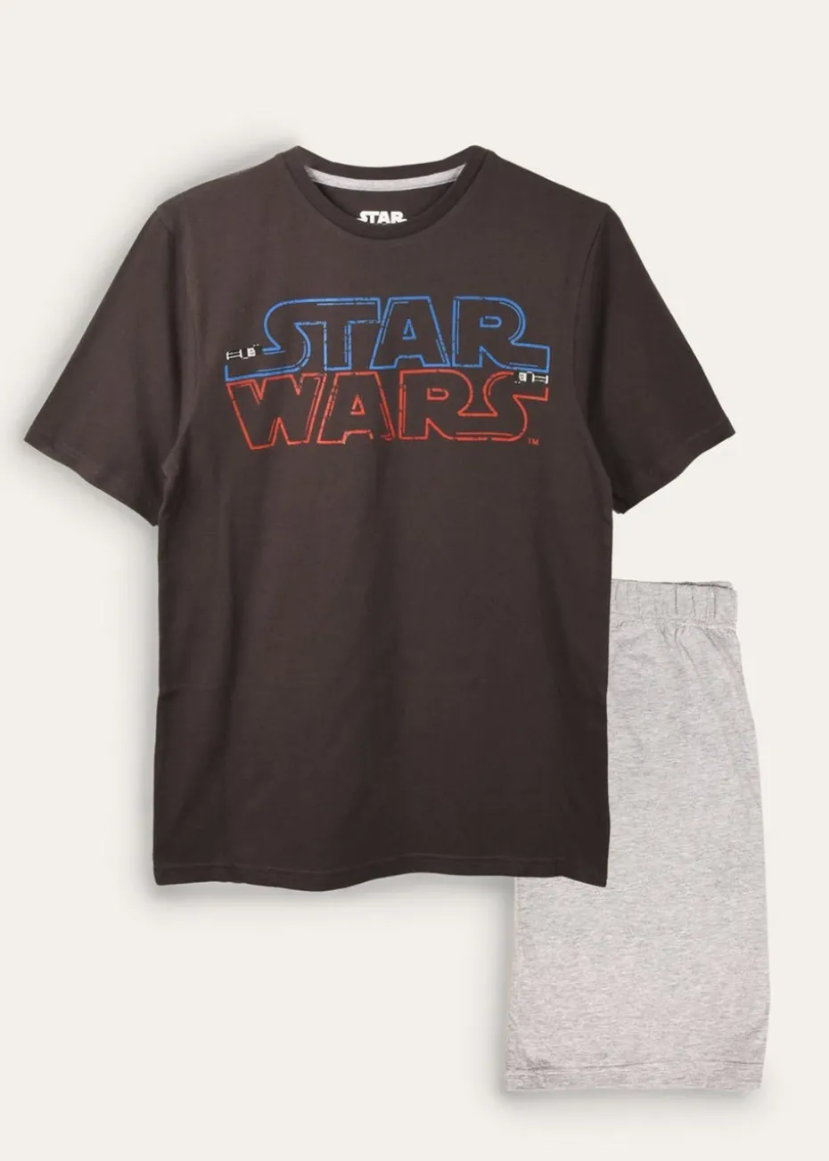 Check out these awesome new, iconic mens Star Wars shorty PJ’s! Made with BCI cotton, we’ve got the sustainable angle covered and with the added benefit of comfort both for night and day! Features the iconic official Star Wars logo on a dark grey top, with contrasting grey shorts.