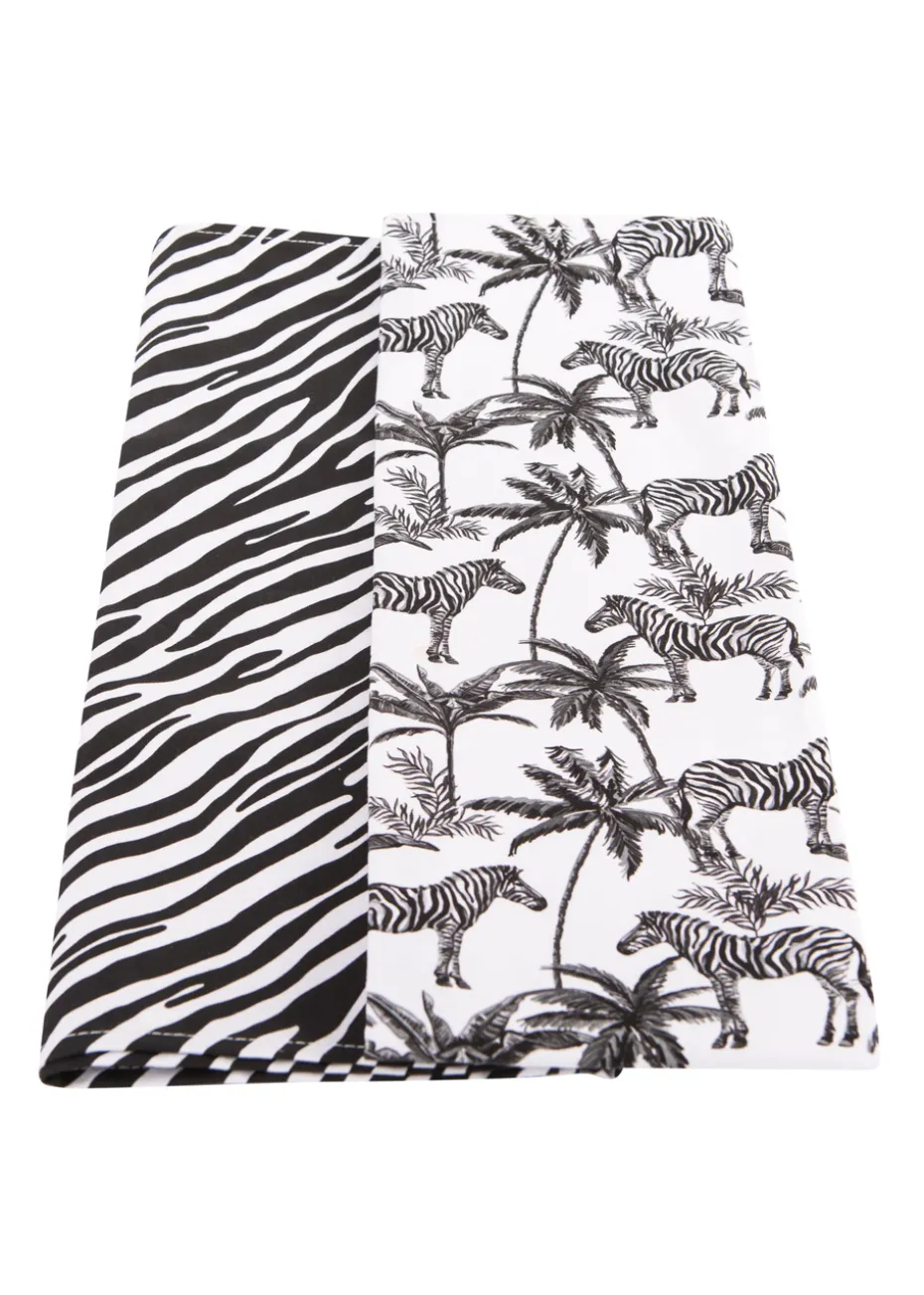 Made from 100% cotton these tea towels come in 2 prints- zebra and zebra stripe, making these towels a stylish and funky addition to any kitchen. Machine washable at 40 degrees these tea towels are part of the Madagascar range.