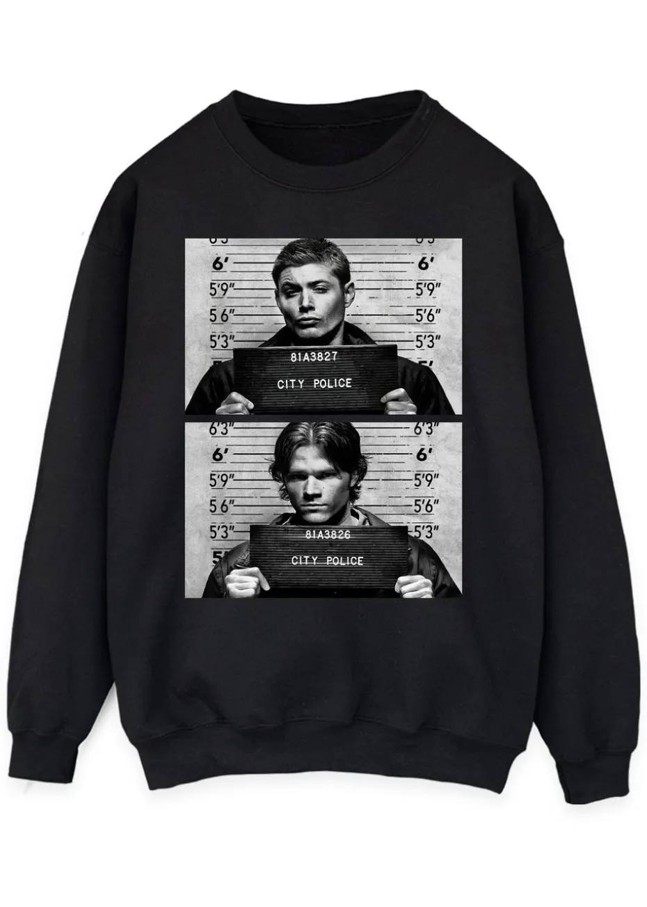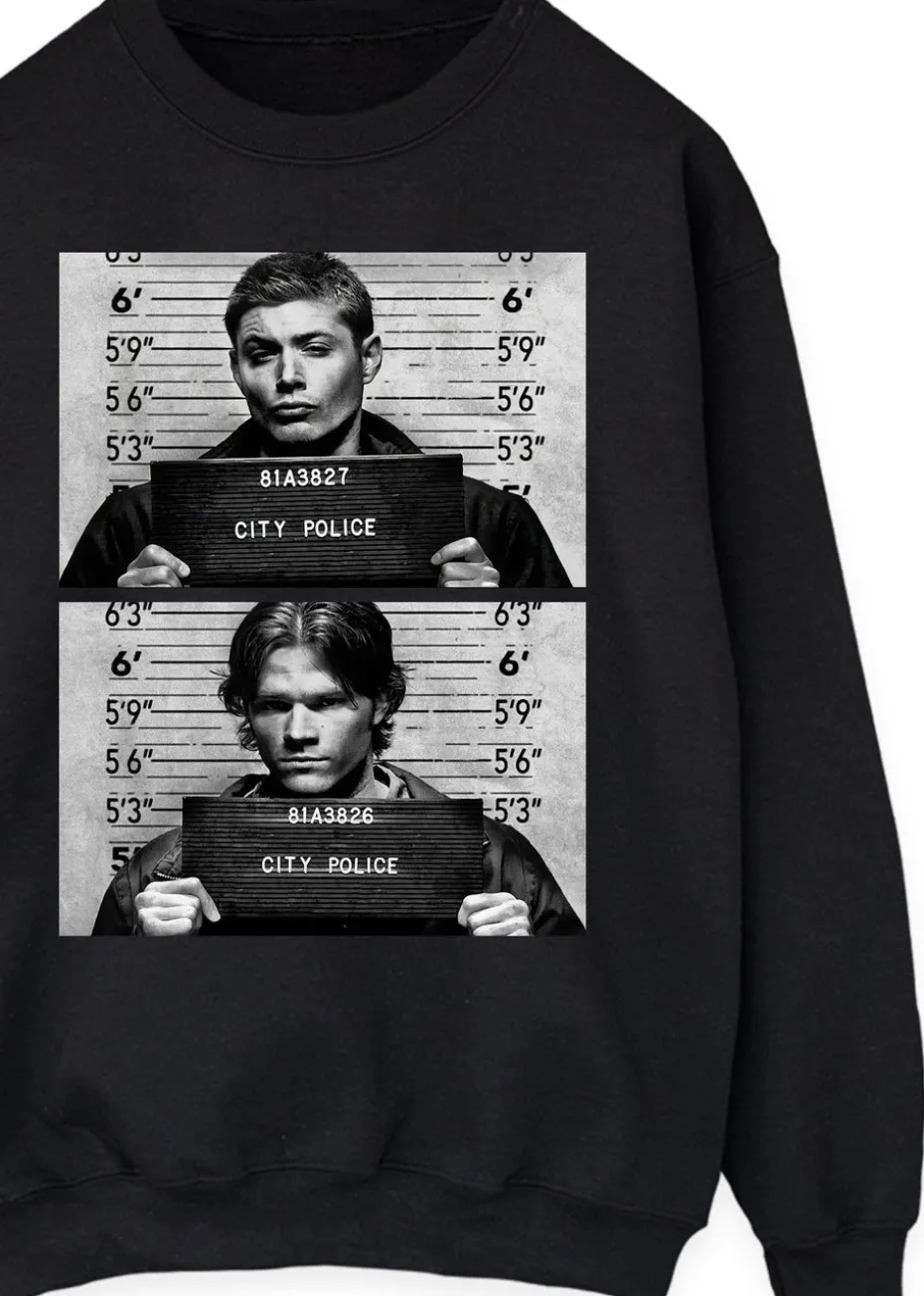 Show your love for the Winchester brothers with this bold Supernatural sweatshirt. Featuring a striking graphic of Sam and Dean’s iconic mugshots, it’s a must-have for fans of the cult TV show. Styled in a comfy relaxed fit with soft fabric and ribbed trims, it’s perfect for off-duty days, binge-watching sessions, or adding a touch of attitude to your casual look.