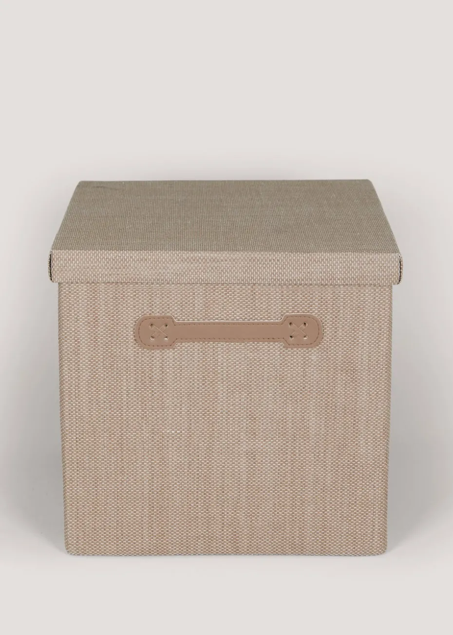 Make tidying up a breeze with this handy fabric storage box. Styled in a taupe colourway with handy side straps that will perfectly complement any modern deco, it’s perfectly sized for stashing books, toys or clutter and comes in a foldable design so you can easily pack it away when it’s not in use. Dimensions: 33cm x 33cm x 31cm.