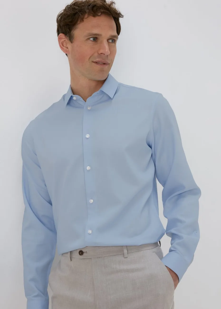 Elevate your formal wardrobe with our Taylor & Wright Blue Slim Fit Twill Shirt. Crafted from breathable fabric, this shirt features a subtle textured pattern that adds a nod to its quality. The classic collar and long sleeves with buttoned cuffs ensure a polished look. The slim fit design contours your body for a flattering silhouette without compromising comfort. Whether you’re heading to the office or a special occasion, the versatile blue colour exudes sophistication. Pair it with trousers or a three-piece suit for a complete formal ensemble.