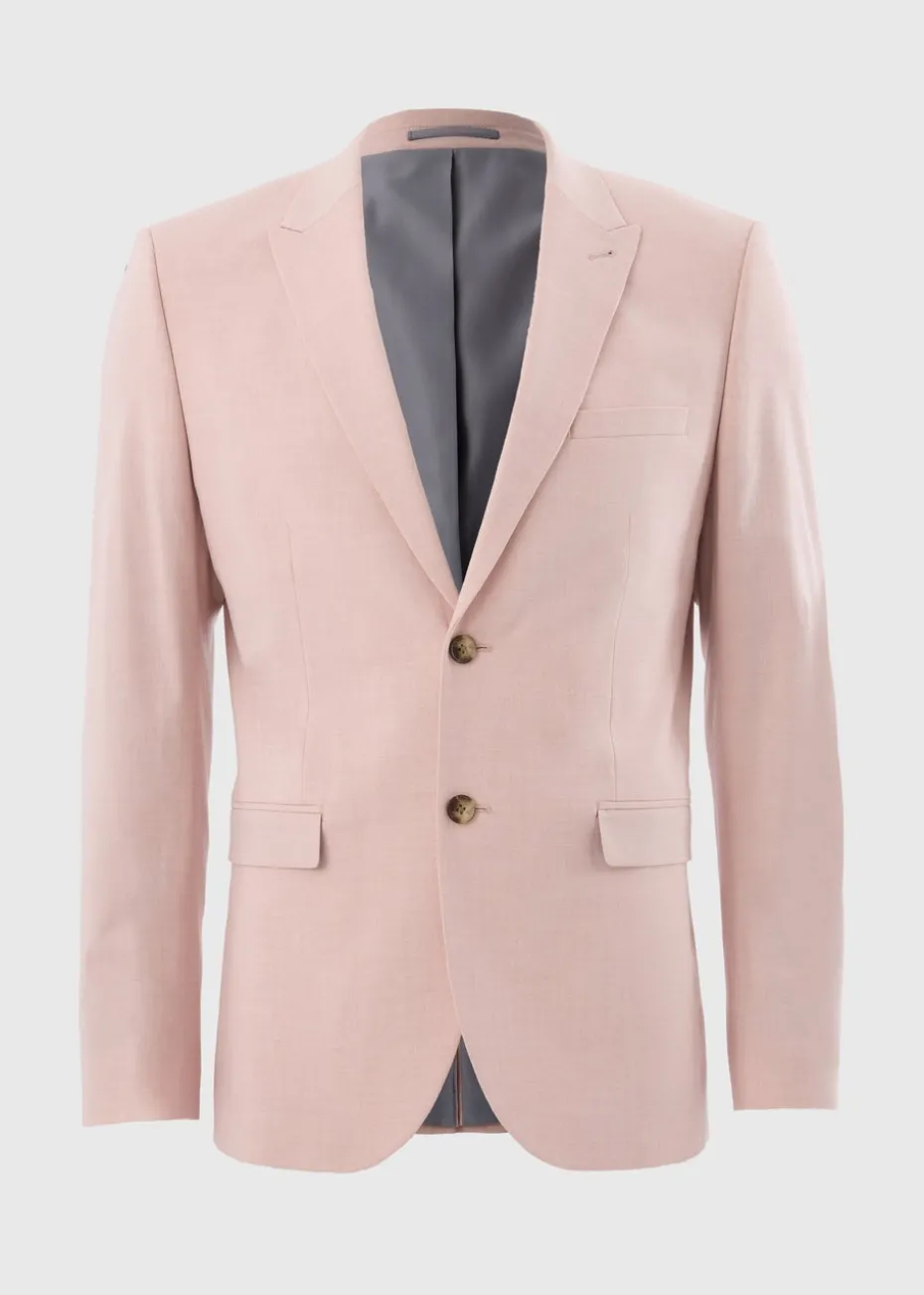 Dashing. Dapper. Debonair. Our Tropez Melange Slim Jacket in Pink will have you feeling and looking your very best. This jacket is expertly crafted from a luxurious cotton blend, ensuring both comfort and sophistication. Its dashing pink hue is sure to turn heads wherever you go. Crafted from a premium cotton-blend fabric for year-round comfort. Tailored to a figure-flattering slim fit, this jacket will accentuate your silhouette and designed with a classic lapel collar and two stylish flap pockets for a touch of utility. Finished with sleek metal buttons for a polished look.